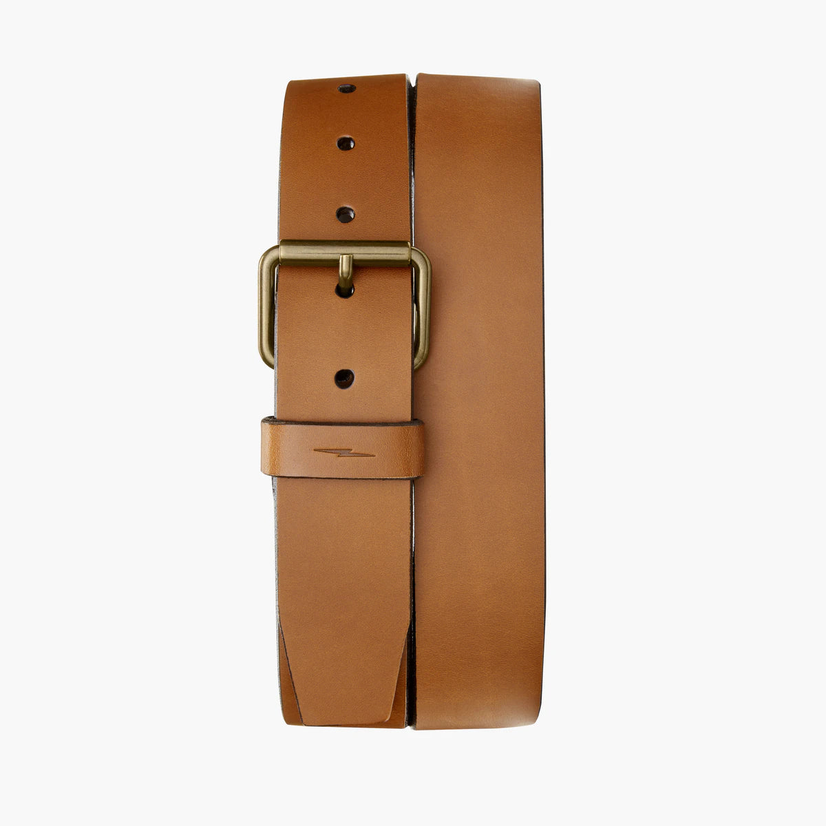 Our Rambler Belt is handcrafted from premium Bridle leather. Featuring matte black or antique gold-toned hardware, this belt is designed to be a classic, everyday accessory.
