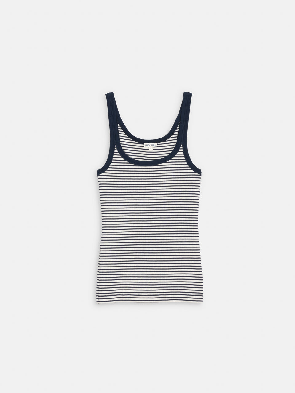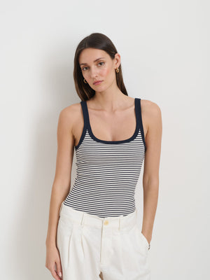 365 Ribbed Tank in Thin Stripe: Navy/White