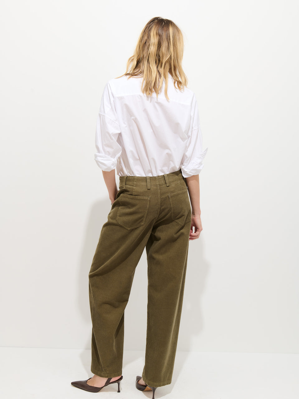 - Details we love: The detachable belt, slight barrel shape in fine wale cord
