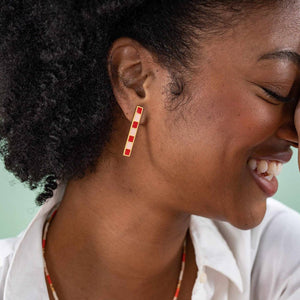 Adele Colorblock Enamel Bar Earrings - Red and Blush