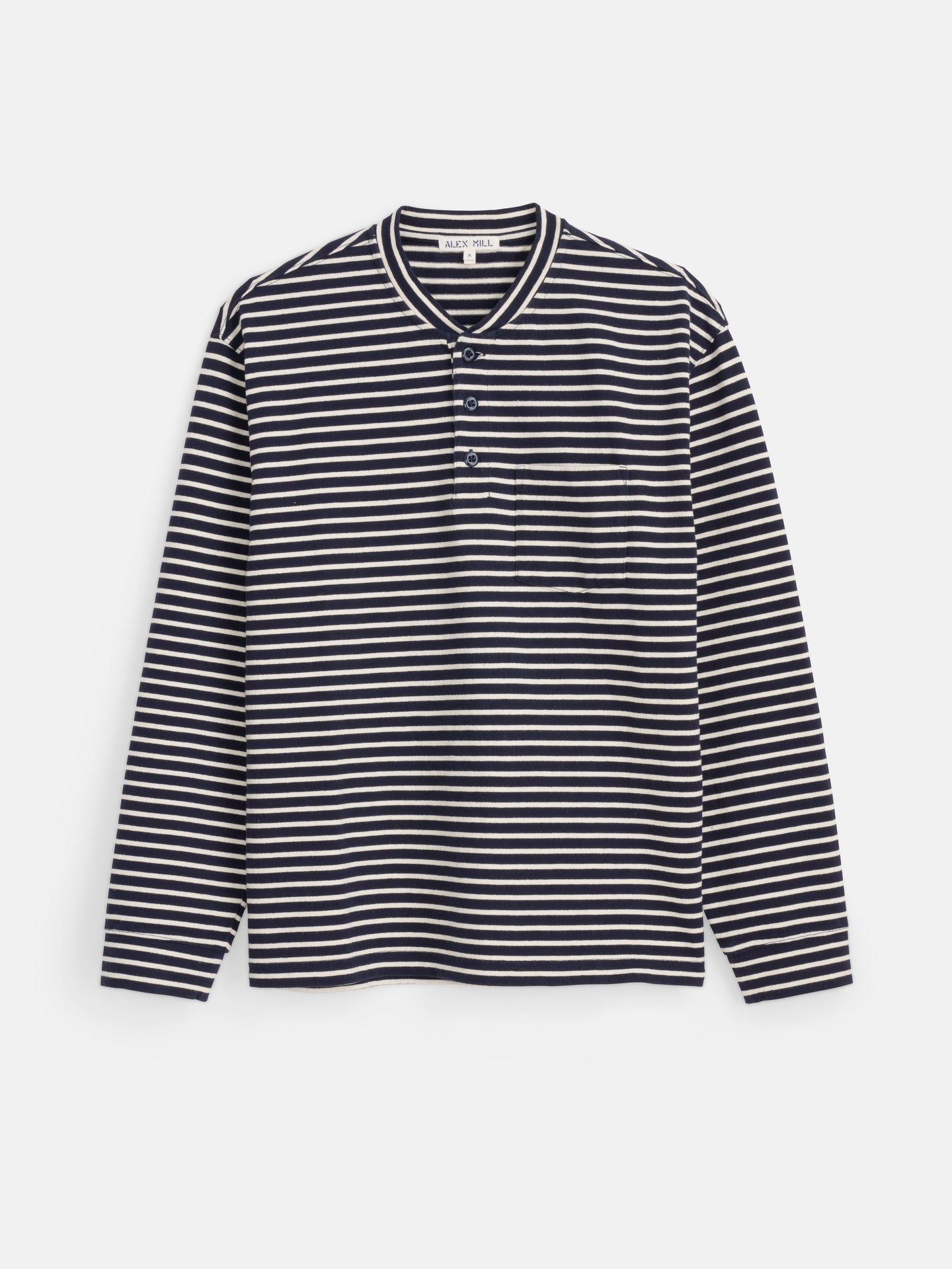 Everyone needs a good stripe long sleeve. This one is a good bet---our most popular henley silhouette made from heavyweight cotton.