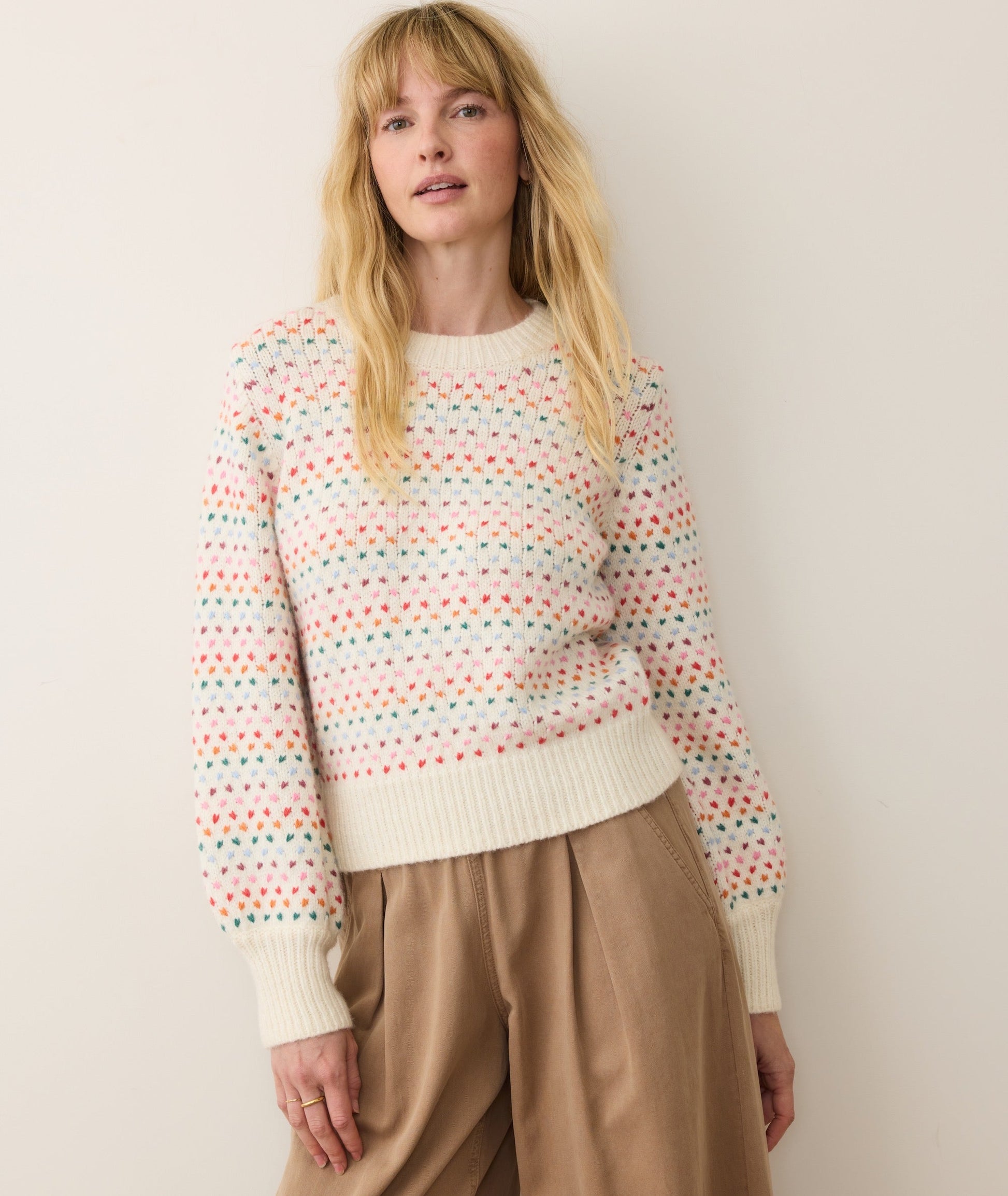 From the billowy bishop sleeves, to the perfectly textured knit, there's a reason people love our Alma sweaters so much. This year we kept the bestselling fit and feel, but changed up the birdseye stitch to give it a tossed look that's a little extra fun. And, we updated the fabric to be even softer. Because we just can't help ourselves.