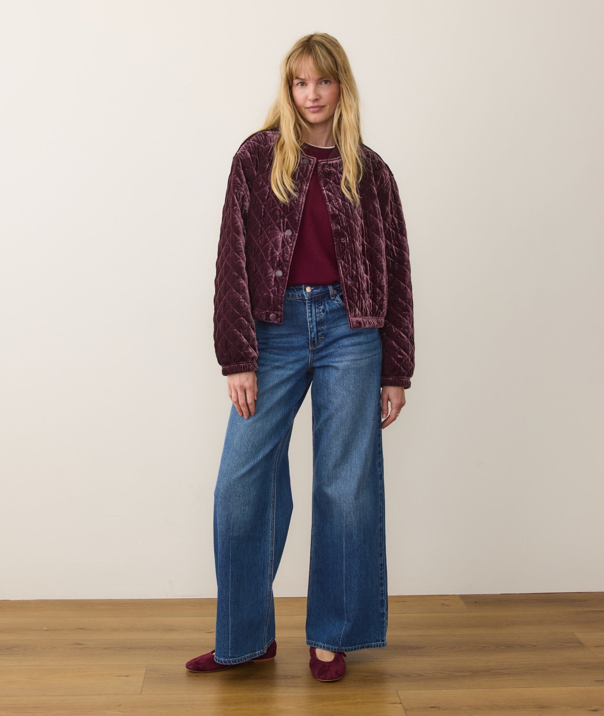Luxurious velvet, warm quilting, and a cute cropped bomber walk into a bar. There’s no joke, it’s just this amazing coat.