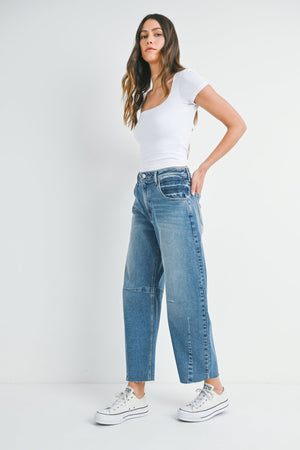 These stretch Barrel wide-leg jeans bring major chill vibes to your look. With a vintage look, the relaxed fit shows it's all about comfort and style, they're your go-to for nailing that effortless cool. Whether you're hanging with friends or hitting up your favorite spots, these jeans keep you on point with their laid-back yet trendy appeal.