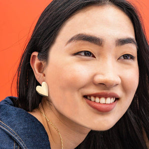 Love is in the air! The Bella Heart Stud Earrings are crafted to help you wear your heart on your sleeves (and lobes!) with untamed style. With their oversized heart silhouettes, the Bella earrings are a radiant reminder to lead with love. Each sculpted curve and dip exudes warmth and passion, capturing romance's ethereal essence. As you turn your head, they'll sway and catch the light, almost as if dancing with joyous, carefree abandon.