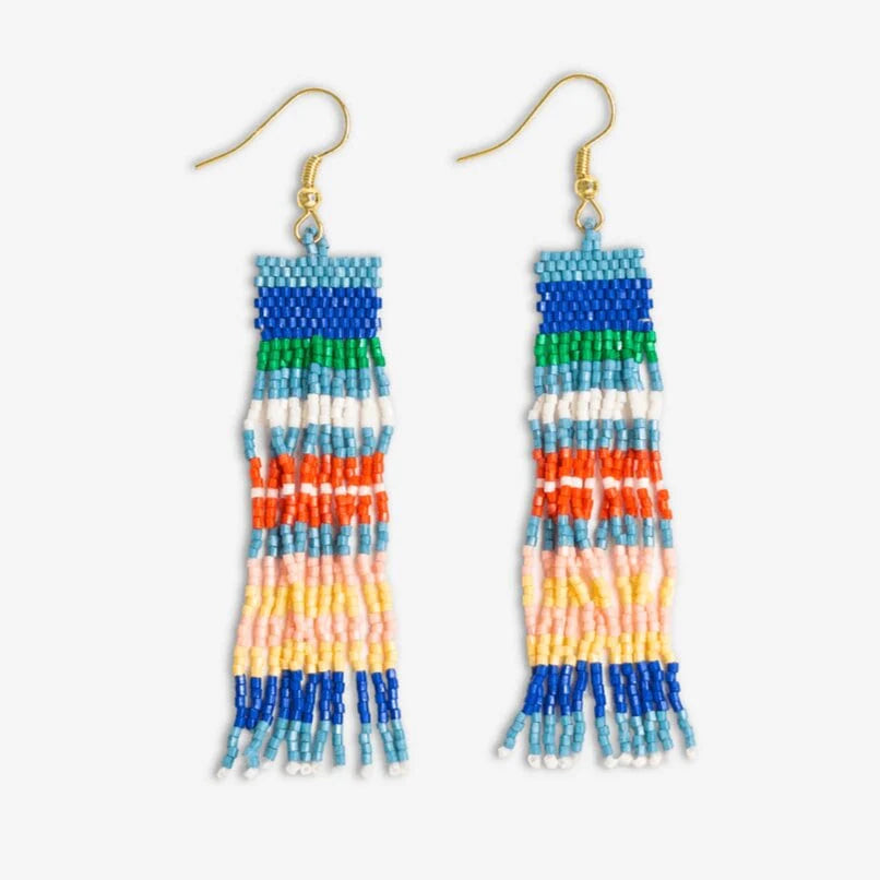 Billie Mixed Horizontal Stripes Beaded Fringe Earrings St. Tropez