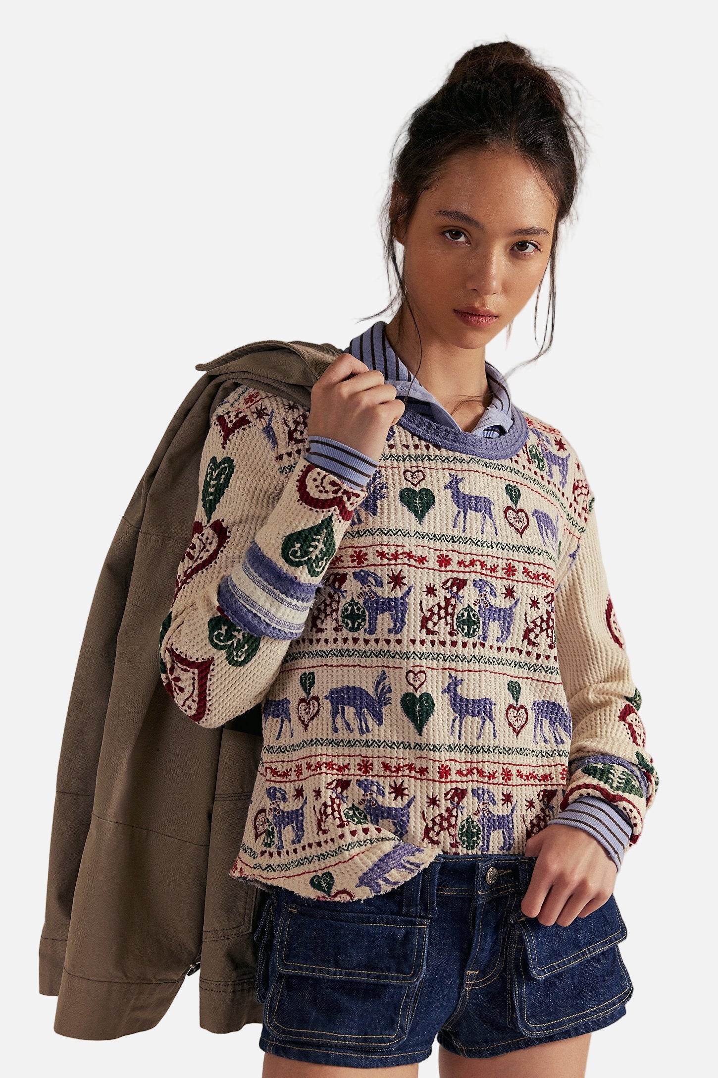 Perfect in print from our We the Free collection, this long-sleeve features a waffle-knit fabrication and relaxed fit with a scoop-neckline and contrast trim.