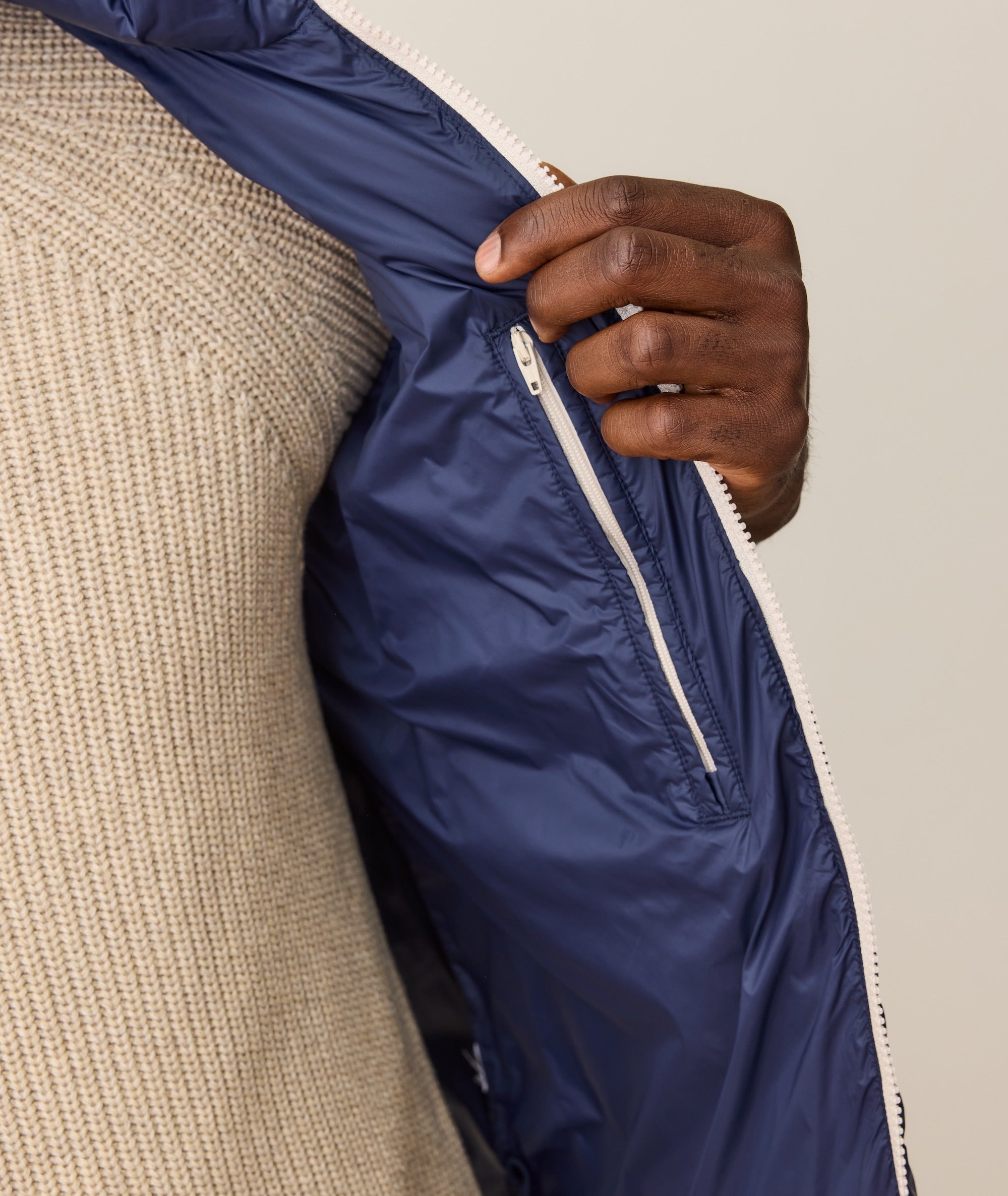 This 100% recycled, water resistant fabric feels ridiculously soft and amazingly lightweight. The kind of thing that's going to keep you warm, but is so comfortable you might forget you're wearing it.