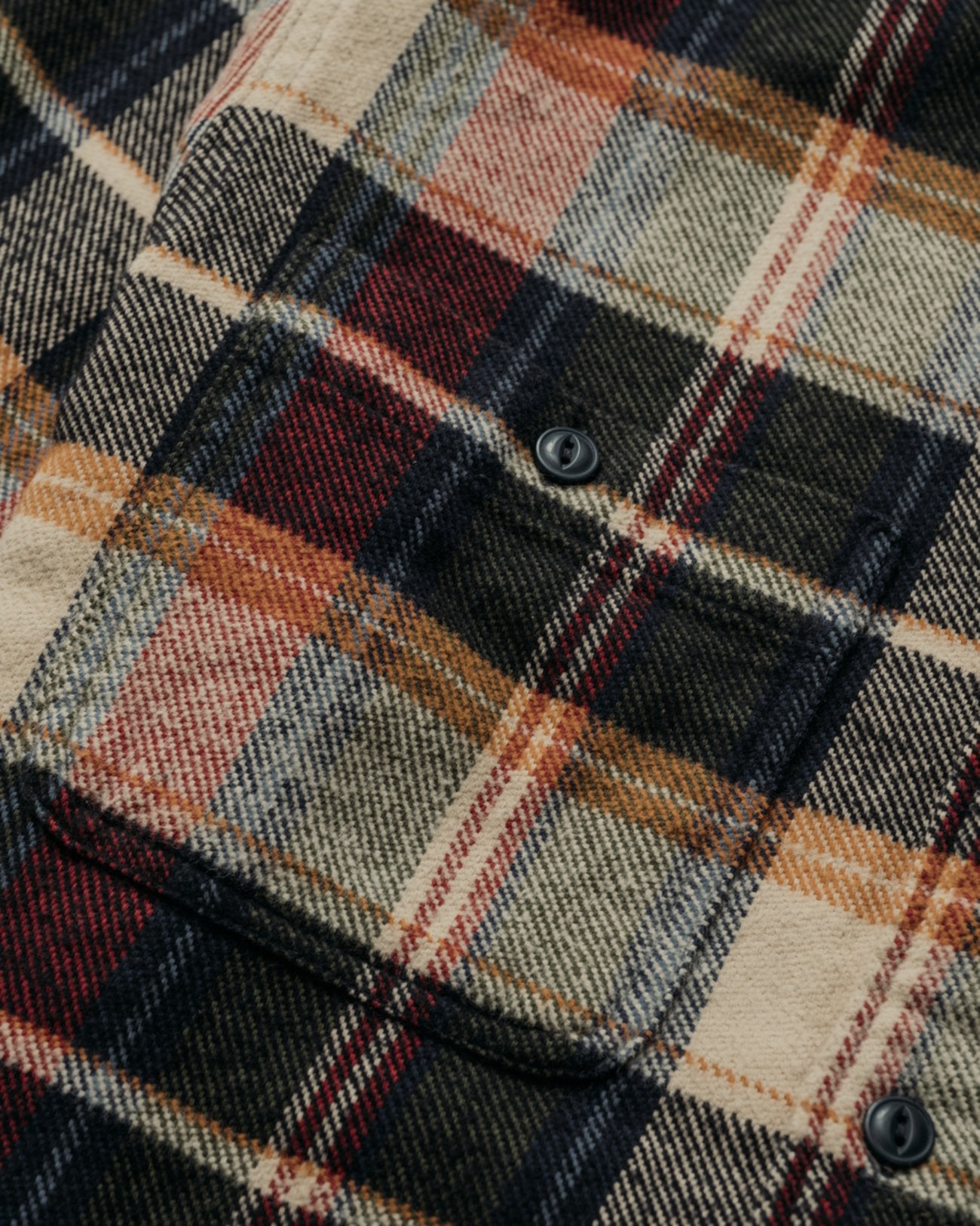 Lightweight cotton flannel button-up in an all-over colorful plaid