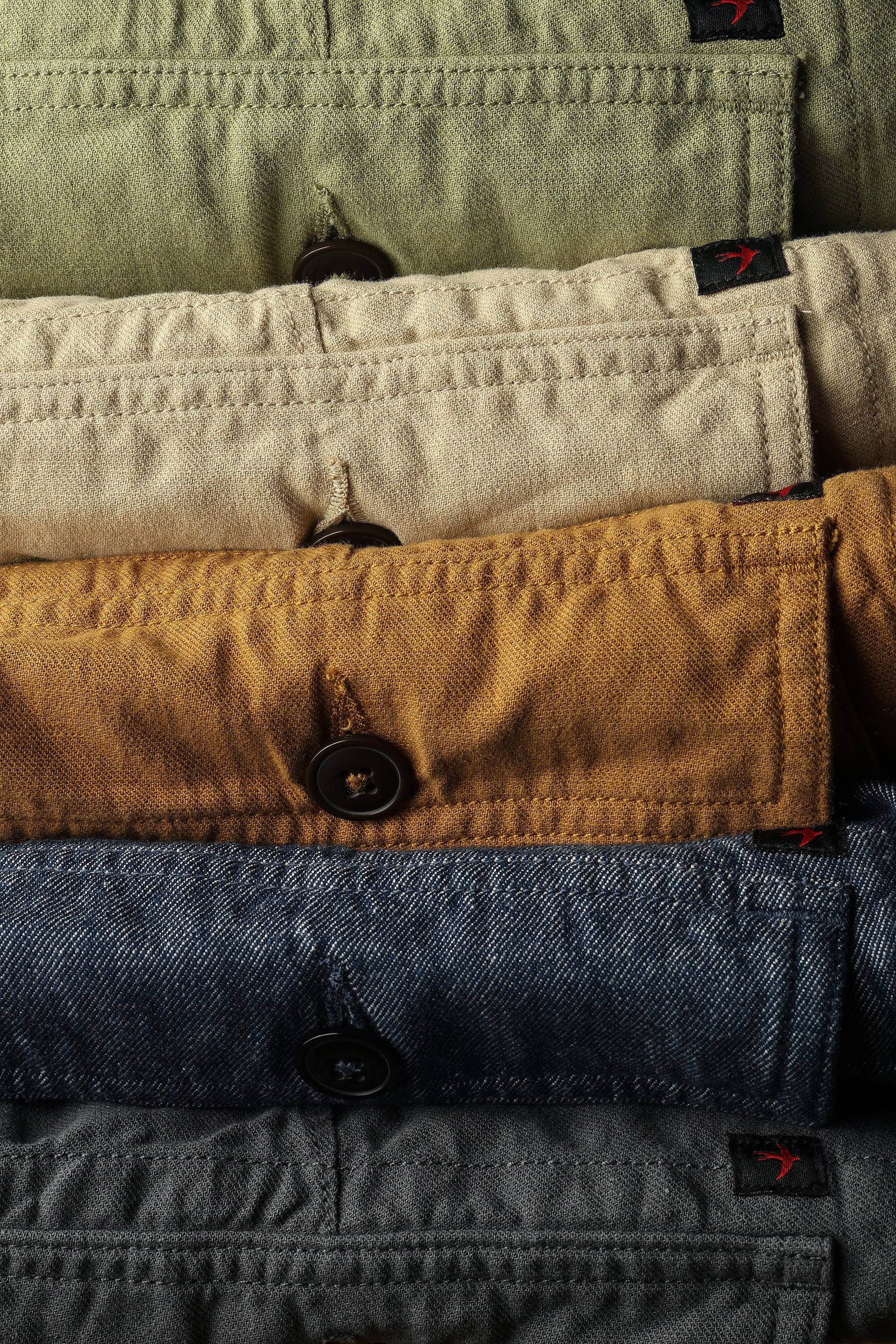 - indigo yarn-dye: 75% cotton, 23% linen, 2% spandex, twill, 210 gsm