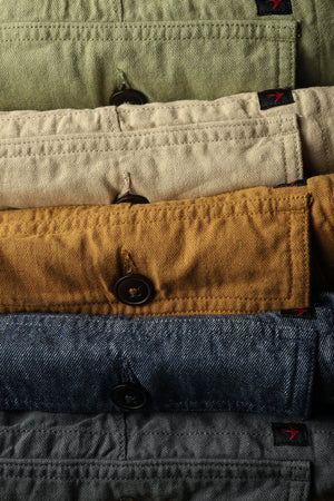 The latest spring version of our classic Supply Pant derived from the U.S. Military’s '50s + '60s variants. A fresh take instantly happens through the fabric content of 25% linen, woven with a coarser finish. The result is a bit of a canvas sackcloth vibe while exhibiting tremendous breathability and drape. Faithfully executed details persist, from the seamless waistband to the reinforcement tape extending under belt loops, to the interior pocket facings rolled 1/16th of an inch from the opening edge, to the added fullness and shape of the applied rear pockets…all lending to a rigorously considered + authentic build quality, the best of its kind.