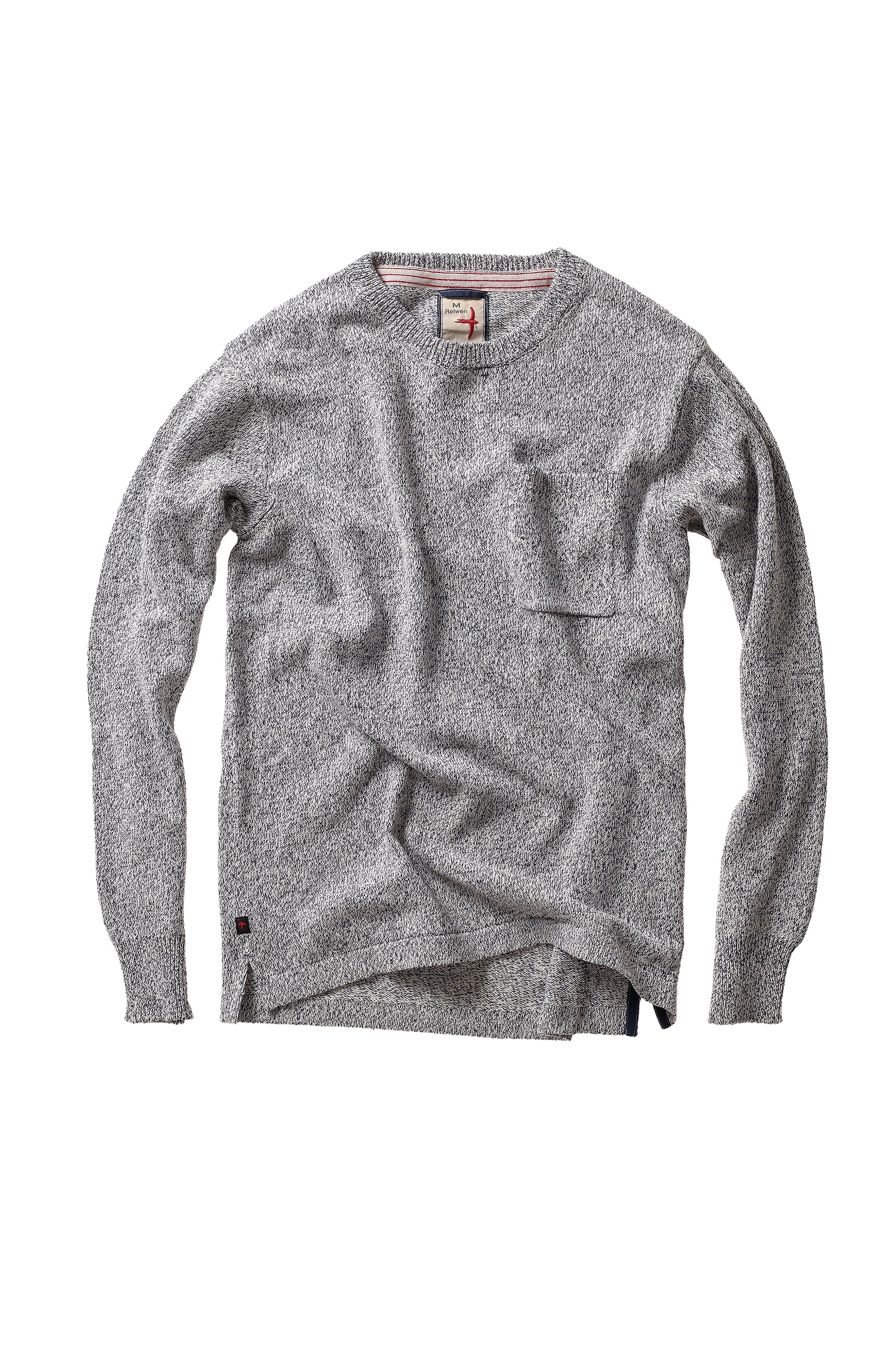 We’ve always made cut+sewn alternatives for the season, but this is the very 1st “sweater” we’ve produced for spring. The difference being that the panels of our new crew have been knitted to shape and linked together vs. cut to shape and sewn. The byproduct is no wasted yarn or fabric scraps left behind on the cutting table. A double-ply yarn of organic cotton and linen, the resulting crew feels supremely casual and soft.