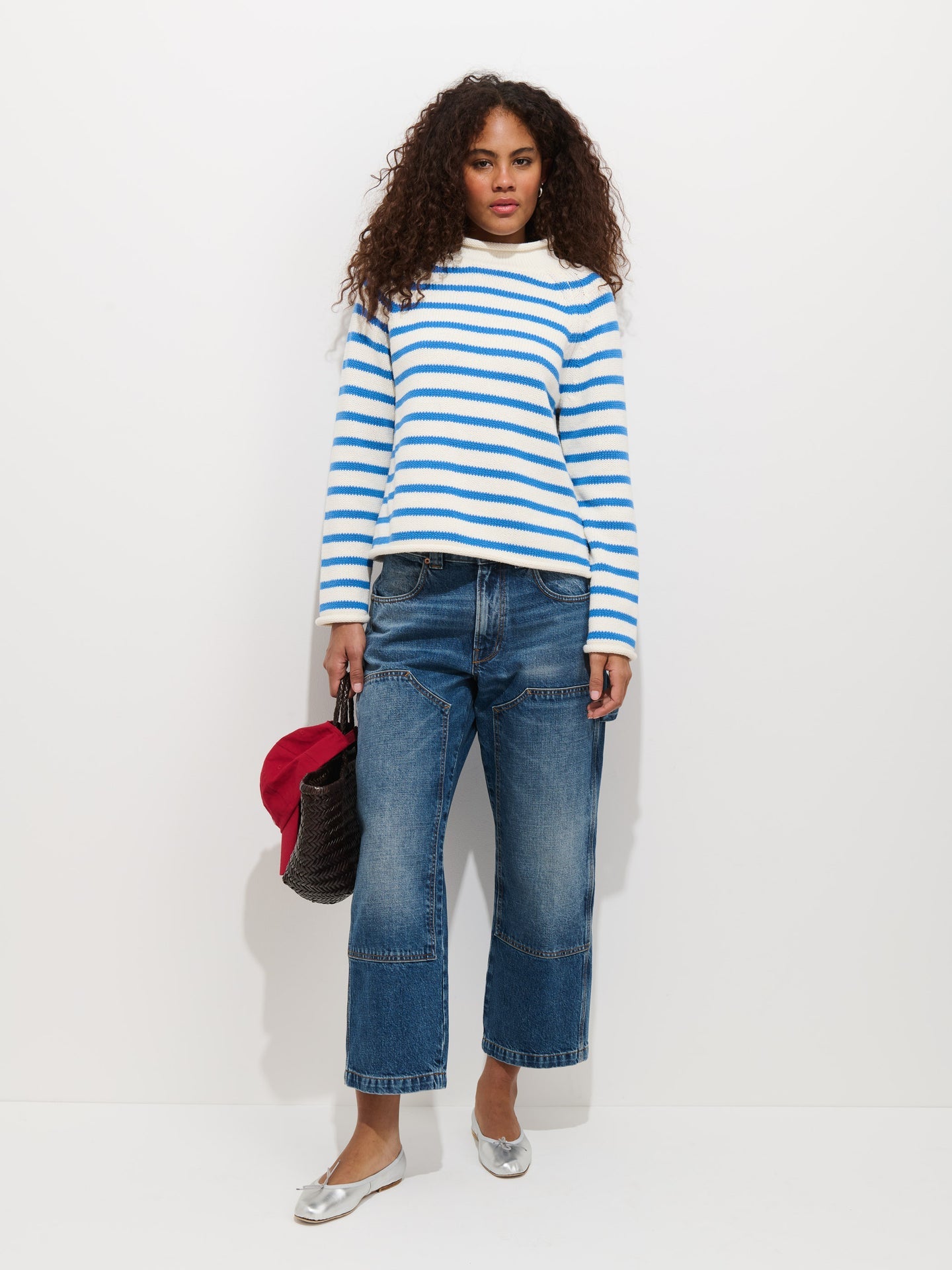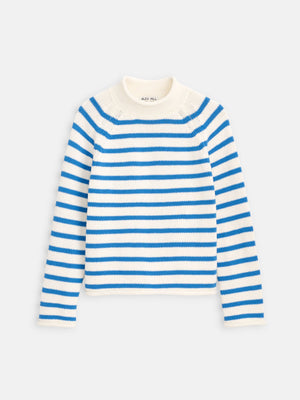 Eastport Striped Rollneck in Cotton - Sea Salt/Ultramarine