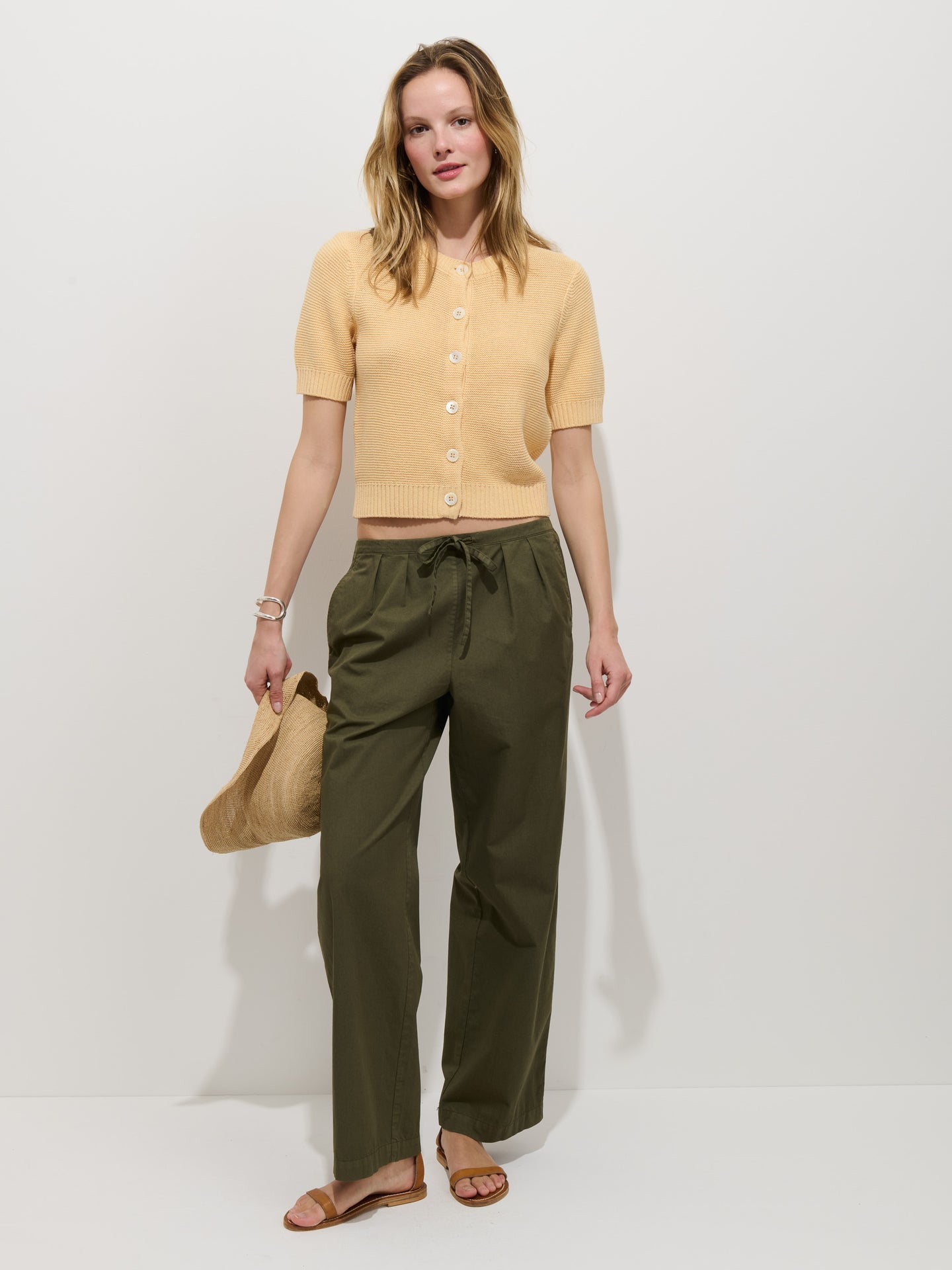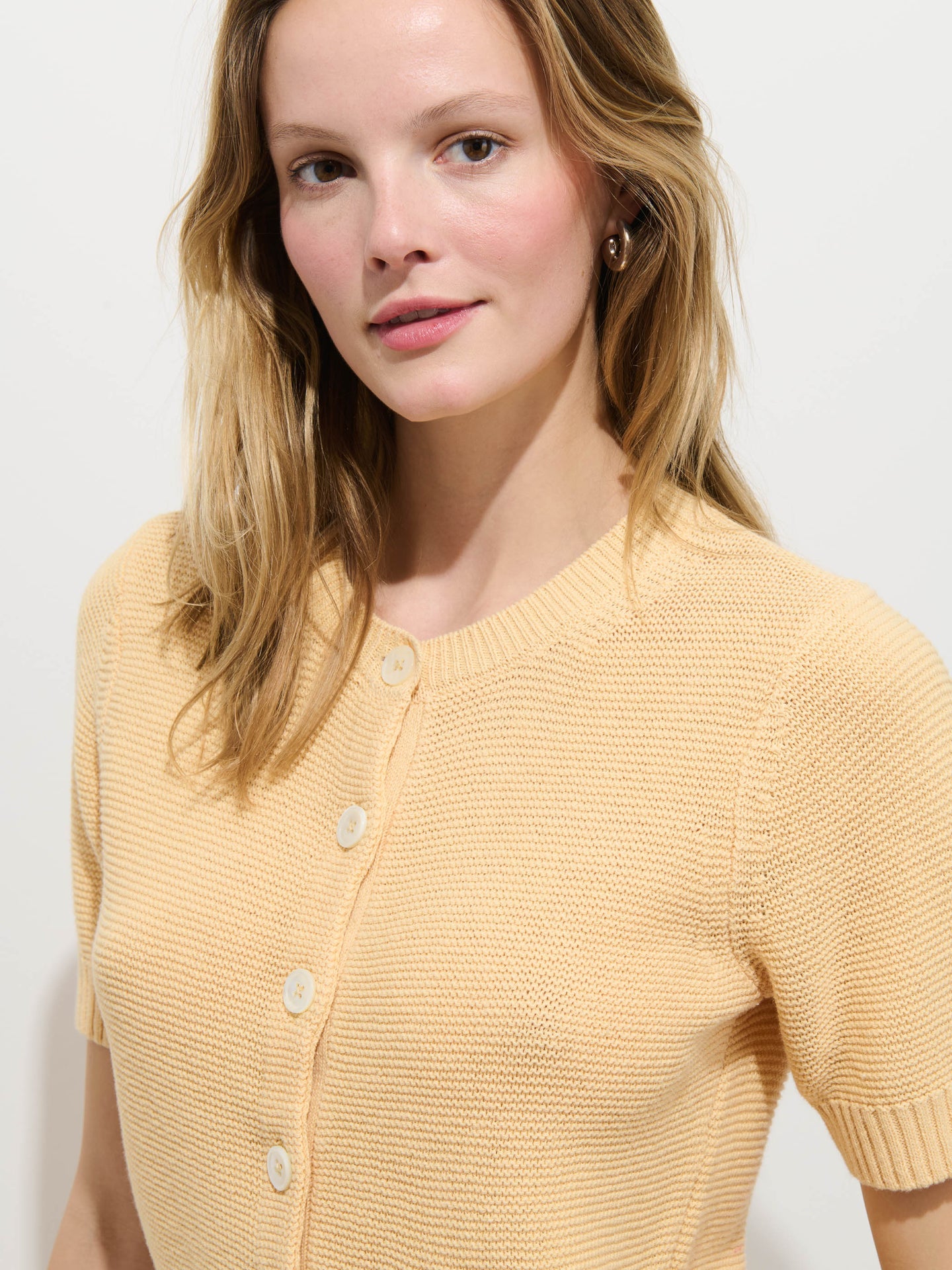 Elle Cardigan in Linen Cotton - Honey Biscuit