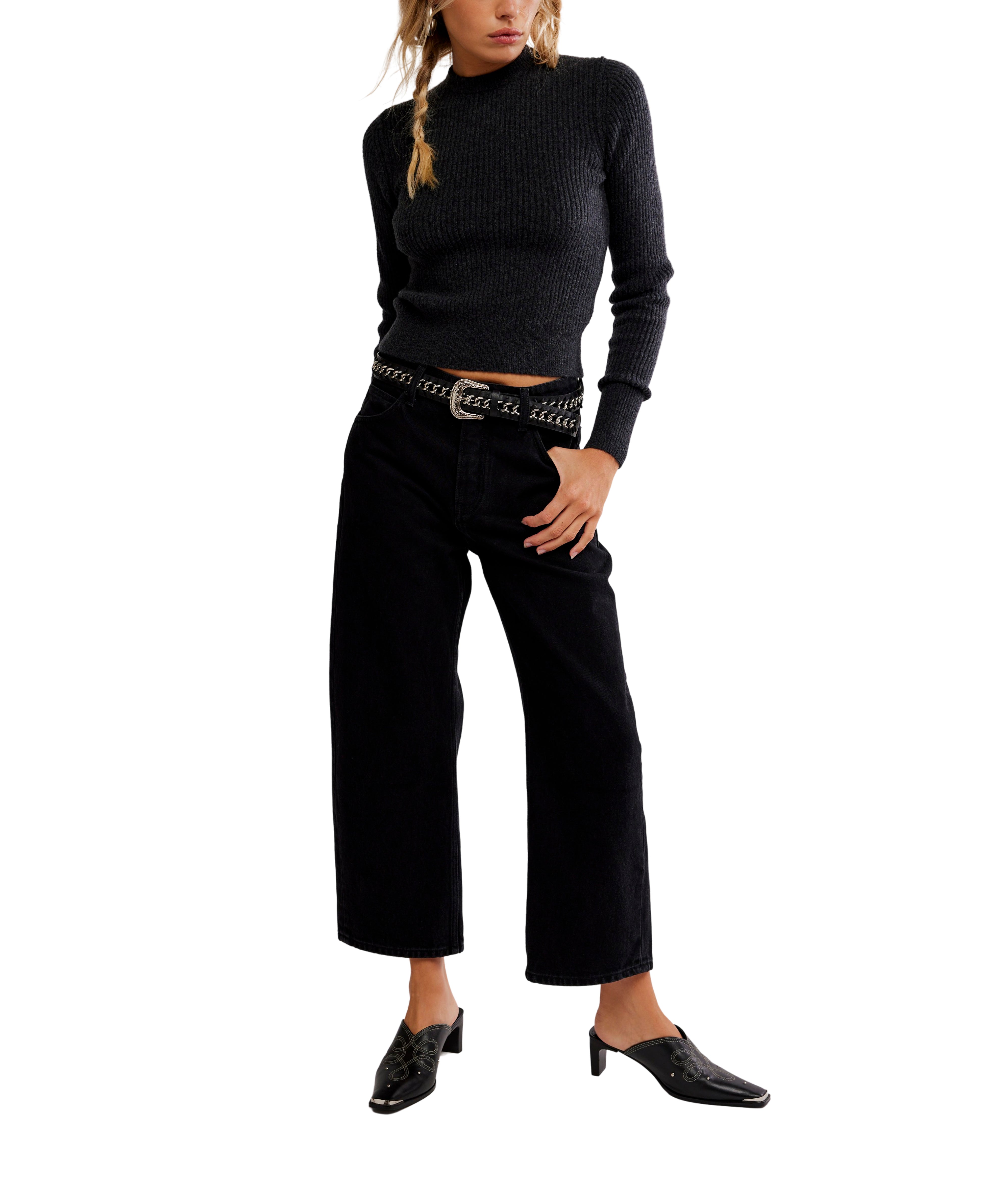Your next everyday essential, this staple pullover features a ribbed knit fabrication and a fitted silhouette for the perfect throw-on style.
