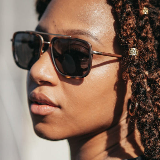 The mixed-materials of the Grant come together in a modern, boxy silhouette for those looking to make a tastefully bold statement. The Grant looks best on round, oval, rectangle, and heart face shapes.