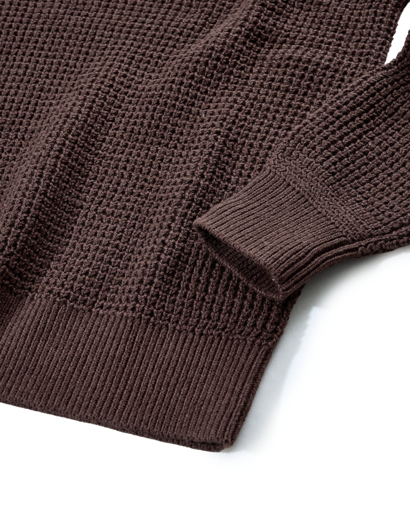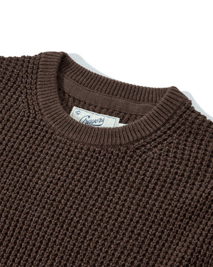 A modern nod to the classic fisherman’s sweater. The Guernsey Waffle Crew is knit in a substantial cotton-rich blend with just enough wool for warmth and structure. Two tones of yarn are plaited together to create subtle color depth and a rich, textured hand. The breathable cotton base makes it an easy layer for fall through spring, while ribbed cuffs, hem, and collar keep the fit clean and timeless.