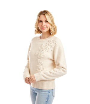A timeless blend of comfort and elegance, this crew neck sweater is crafted with a minimal wool blend for a soft, cozy feel. Featuring delicate hand-embroidered floral details across the front and sleeves, it adds a feminine touch to a classic silhouette. Designed with set-in long sleeves, ribbed cuffs, and hem, this pull-on style pairs effortlessly with your favorite denim or skirts for a chic everyday look.
