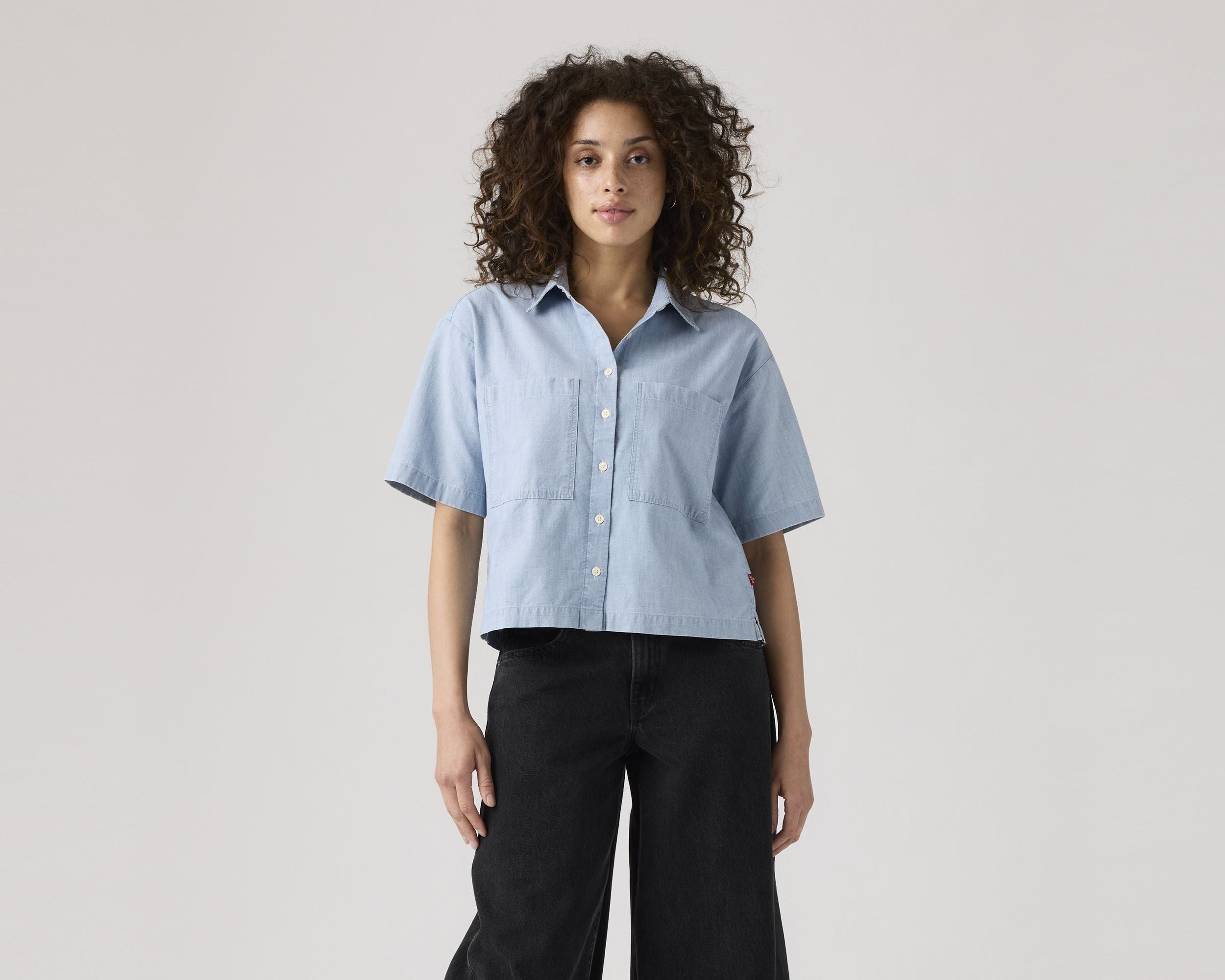 Our Harlie Short-Sleeve Cropped Shirt is short and sweet, just how we like it. Cut with a cropped, relaxed fit, it features a classic button-up front and two patch pockets. • An easy cropped button-up • Cut with a relaxed fit • With two chest patch pockets