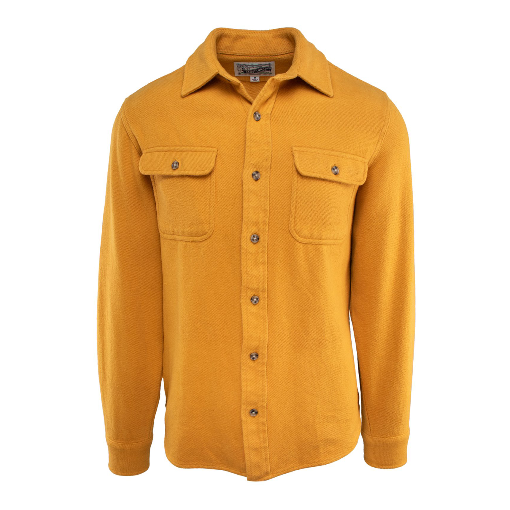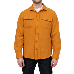 Long sleeve heavy weight brushed Calvary twill flannel work shirt with button front closure, two button down chest pockets and adjustable buttoned sleeve cuff closures.