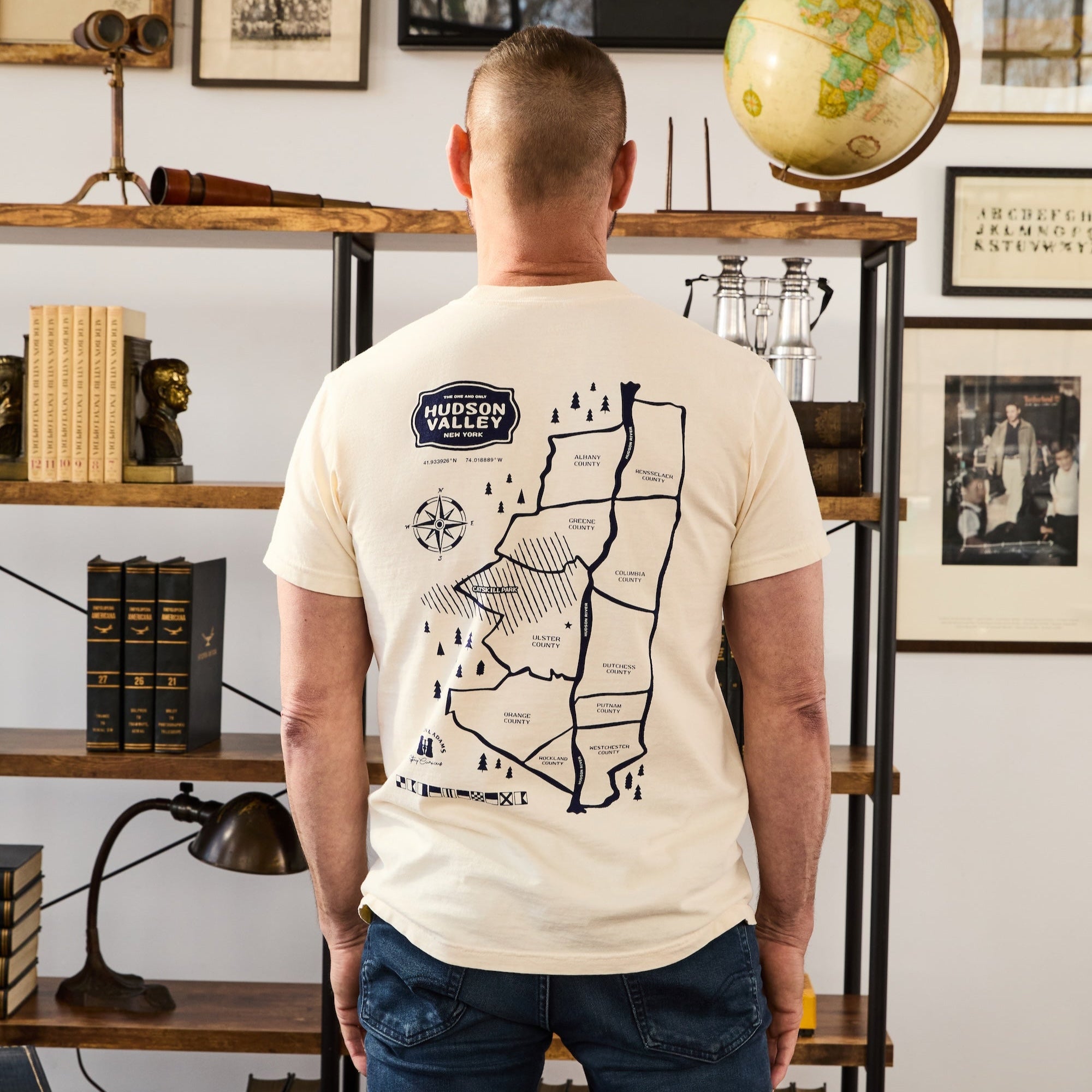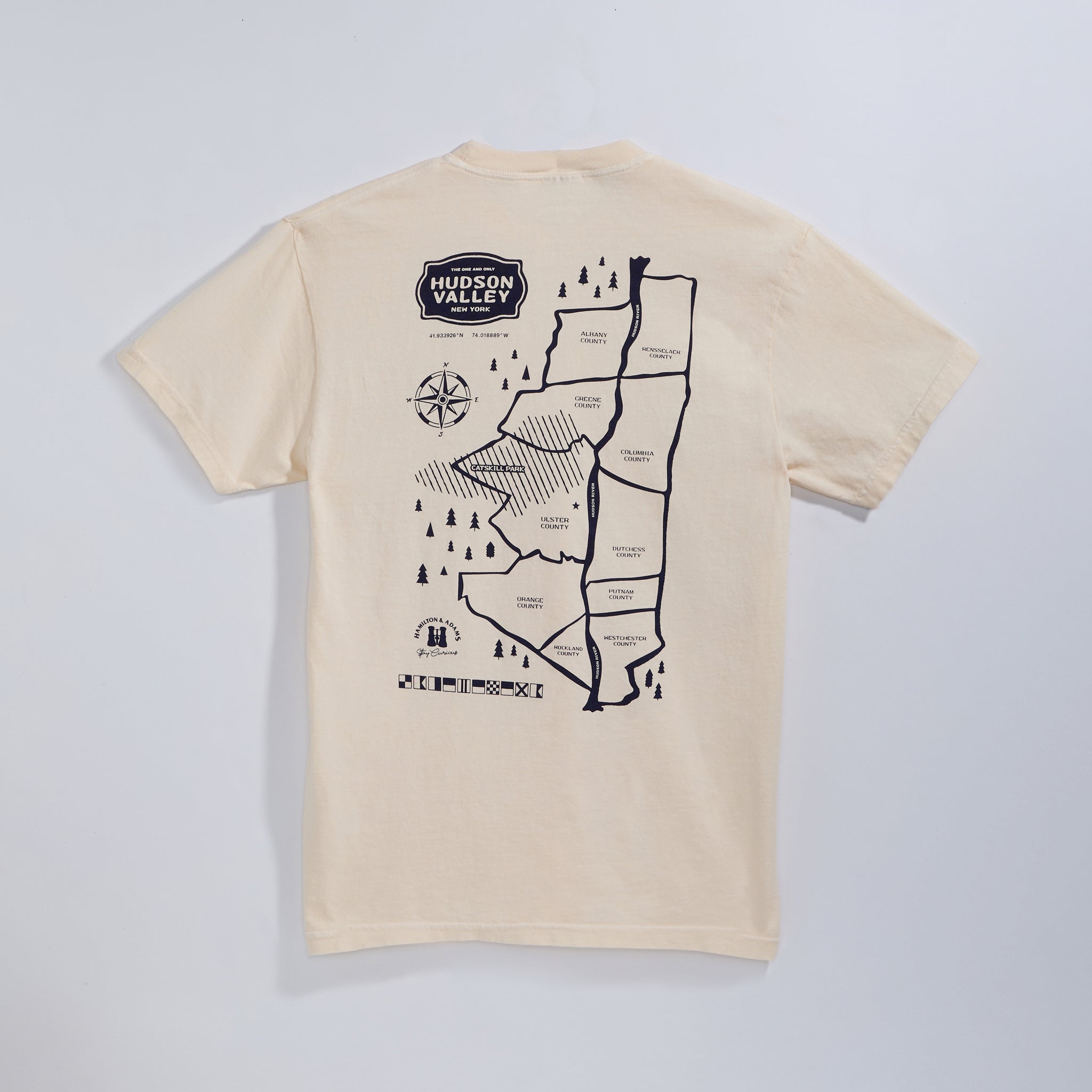 Wear your love for the Valley. The Hudson Valley Map Tee features a hand-drawn back graphic that highlights the towns, trails, and terrain that make our region so special. On the front, a simple compass design and Stay Curious script keeps things clean and classic.