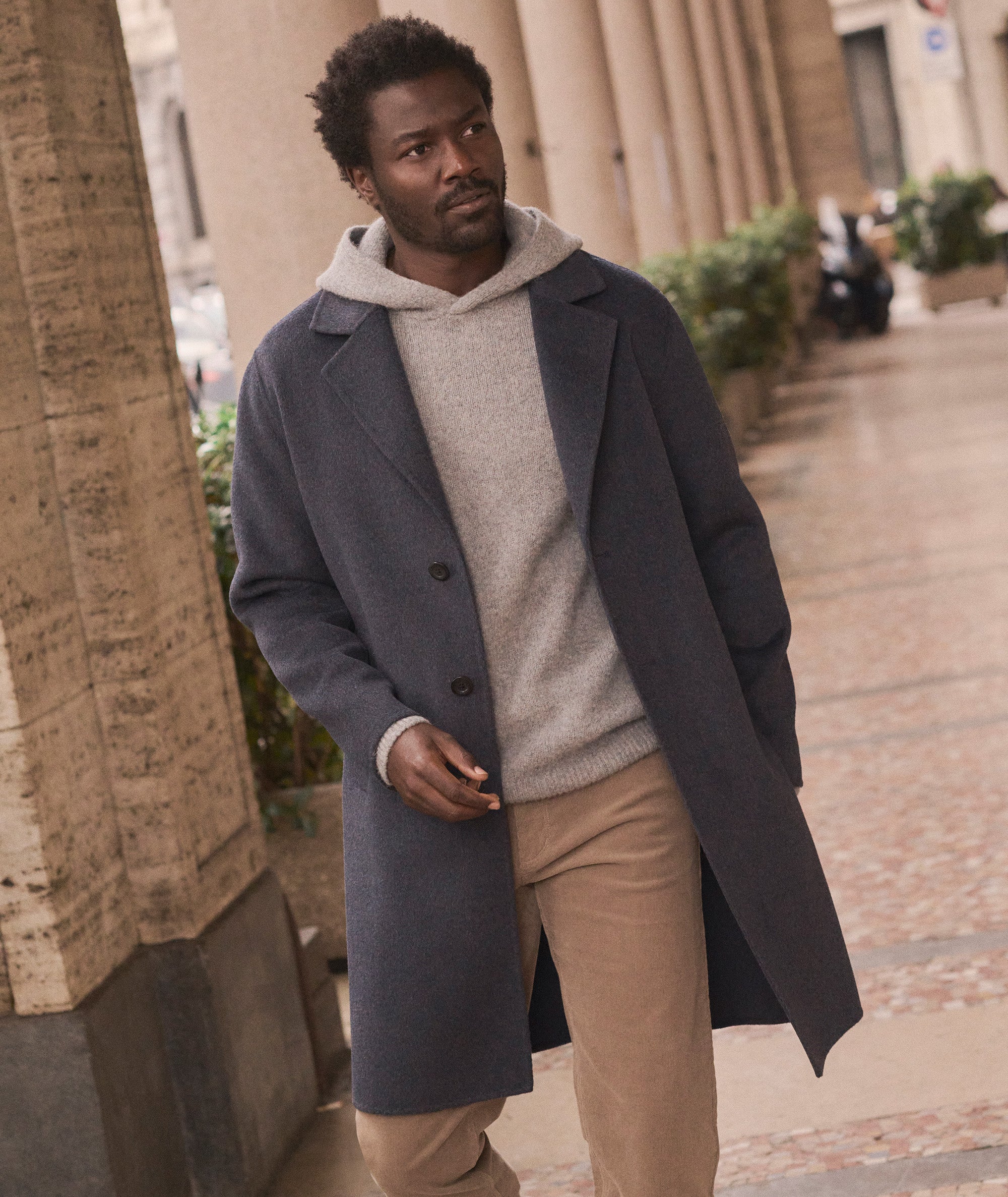 This double faced wool coat is the kind of top layer you can wear with chinos to work, or with a hoodie and sneakers on the weekends. It dresses up or down effortlessly, but always looks sharp thanks to the sleek fabric and longline length. It's about time you moved up in the world.