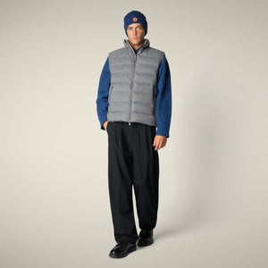 The Italo model men’s puffer vest comes in our new flannel-like fabric—soft like wool, yet made entirely from recycled polyester. With its clean silhouette, standing collar, and zipped pockets, it’s designed to transition seamlessly from commute to office. Wear it over a suit for added warmth or under a coat on colder days.