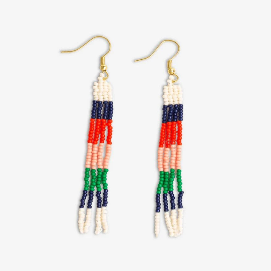 June Colorblock Petite Beaded Fringe Earrings St. Tropez