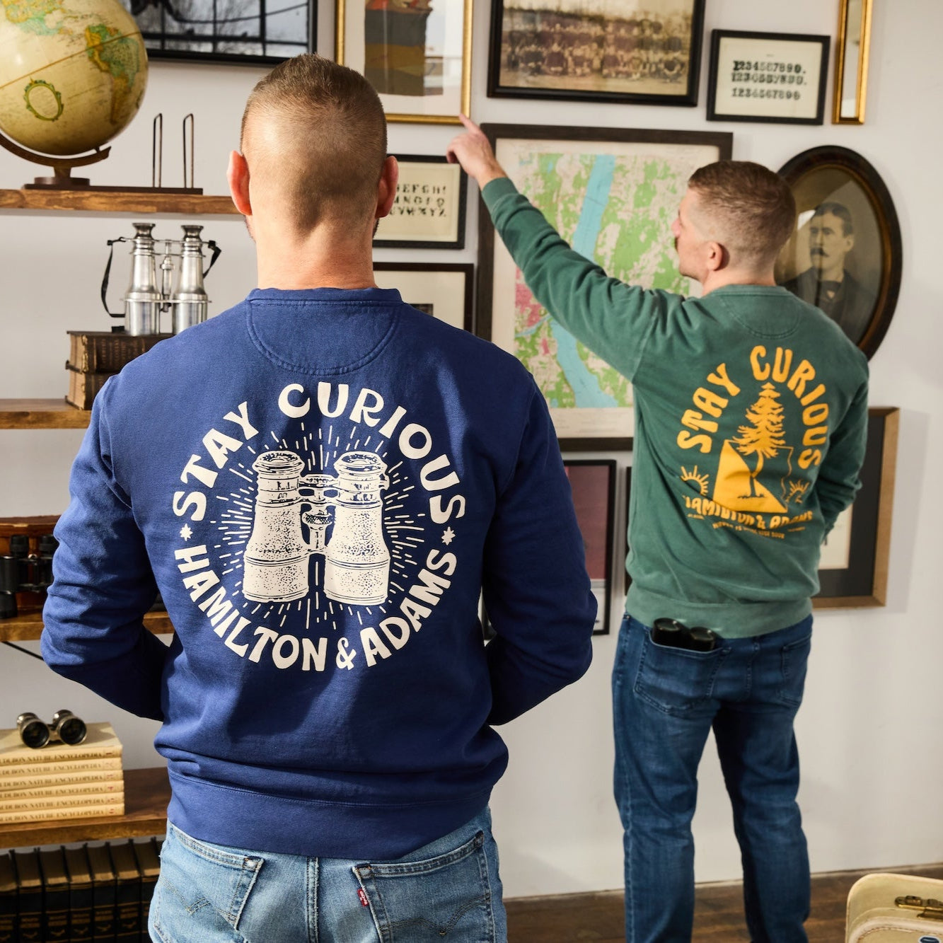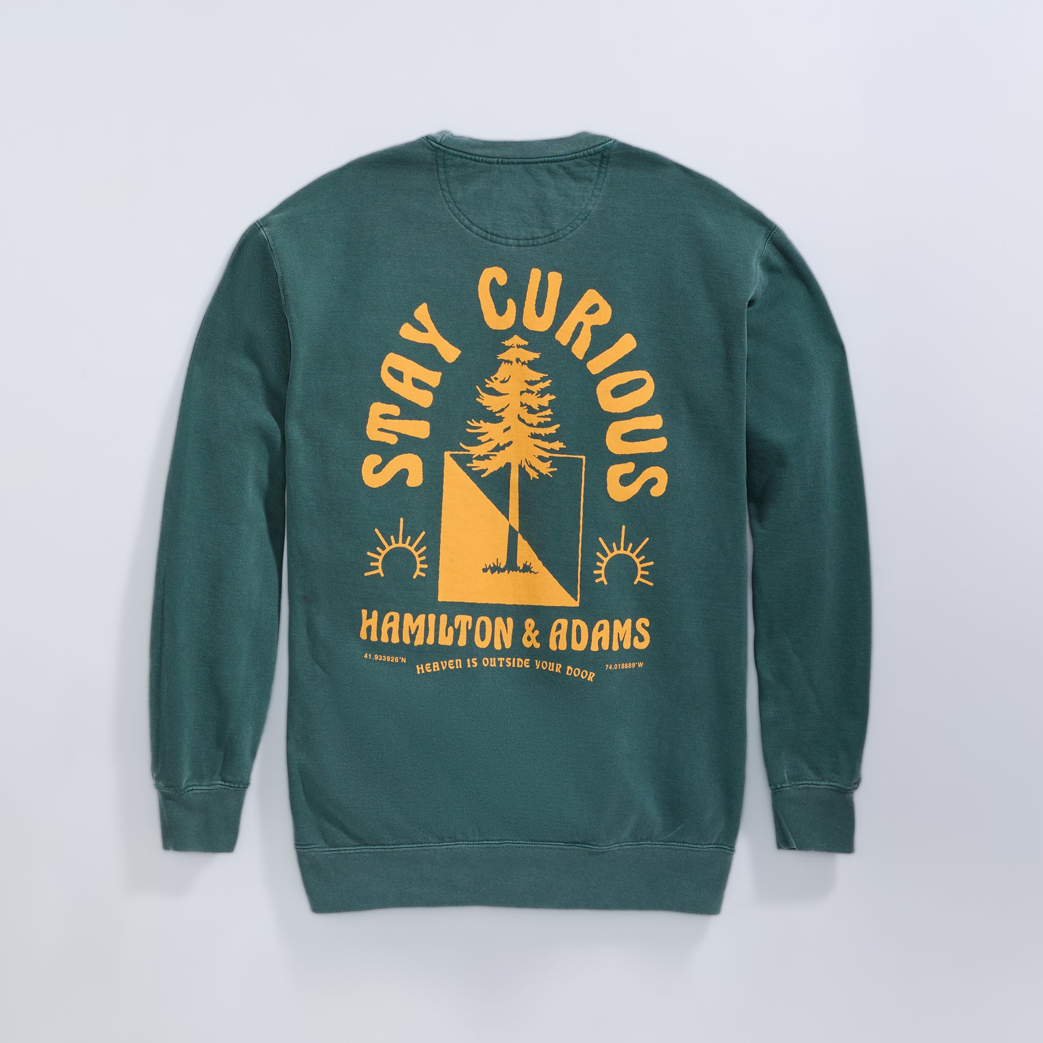 Adventure starts right outside your door. The Lonesome Pine Crewneck is built for wanderers, weekend explorers, and anyone who finds peace under the trees. Featuring our signature “Stay Curious” back graphic in golden ink and a small chest hit up front, it’s a cozy essential with just the right amount of outdoorsy energy.