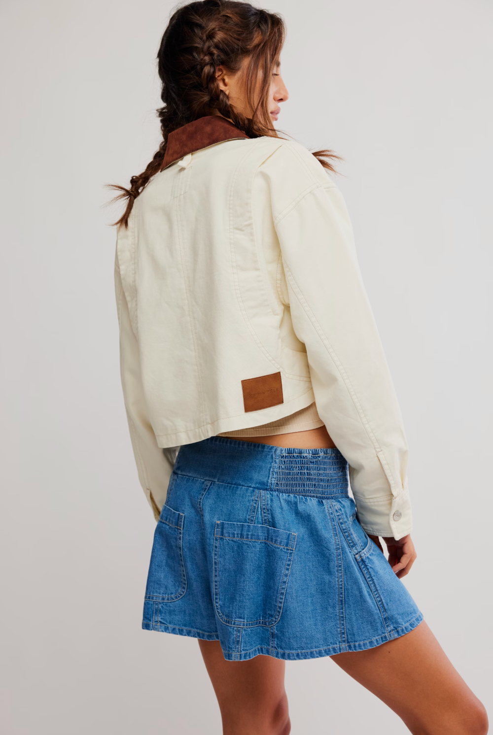 The true definition of an effortless essential, this wear-anywhere workwear jacket from We The Free is featured in a super-cropped, boxy silhouette with exaggerated pocket detailing for the perfect utility-inspired touch.