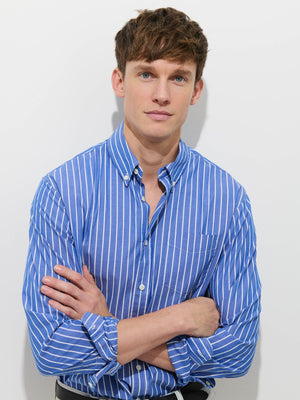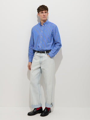 Mill Shirt in Thin Stripe - Blue/Ivory