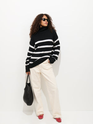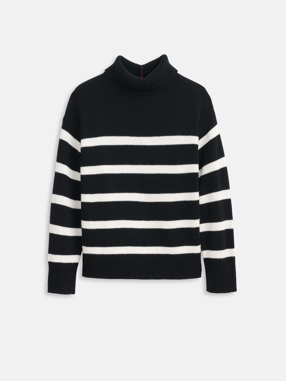 Nottinghill Turtleneck Sweater Stripe - Black/Snow
