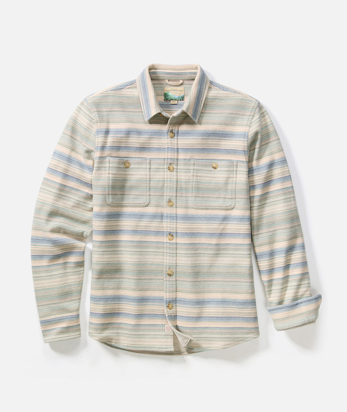 Pacifica Stretch Twill Overshirt - Blue / Green Baja Stripe
