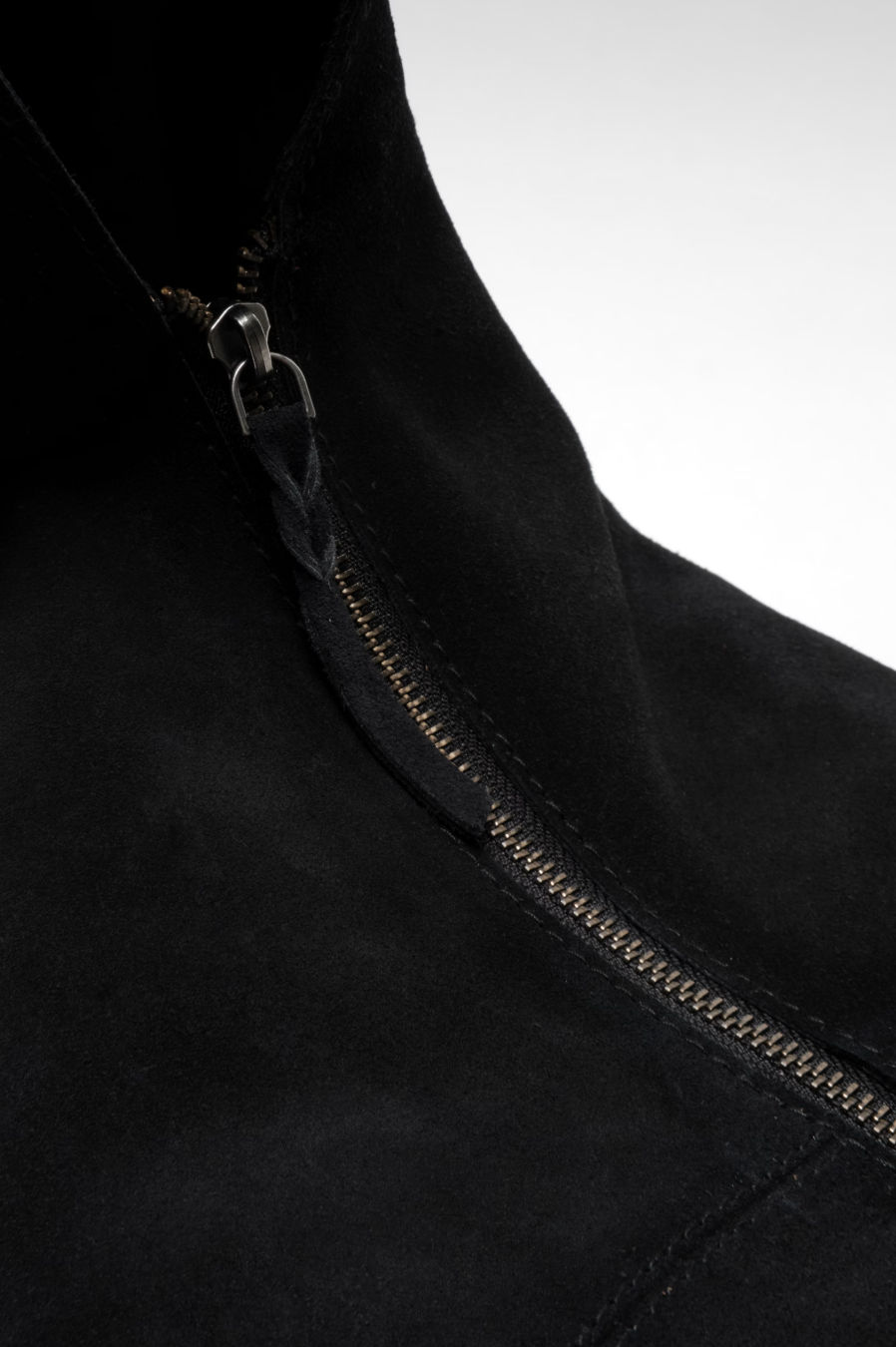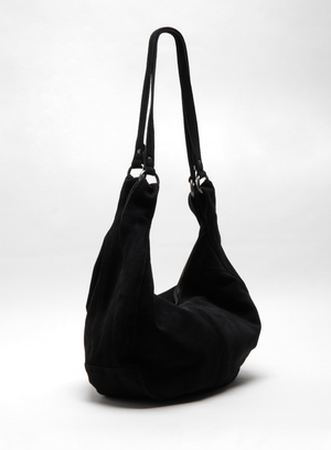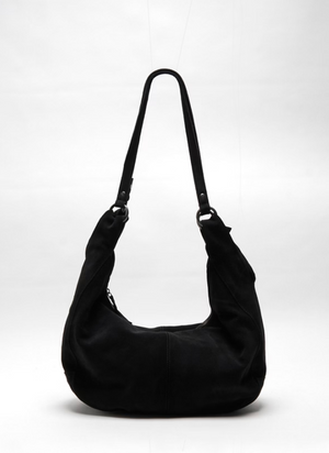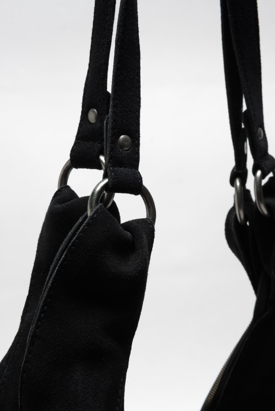 Effortlessly functional, this tote bag is featured in a slouchy hobo style with two elongated shoulder straps, all in soft suede fabrication with zipper closure for the perfect go-to bag.