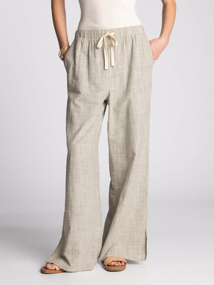 an elastic waistband, side pockets, and washed cotton fabric. Make it a set with the Sable Top.