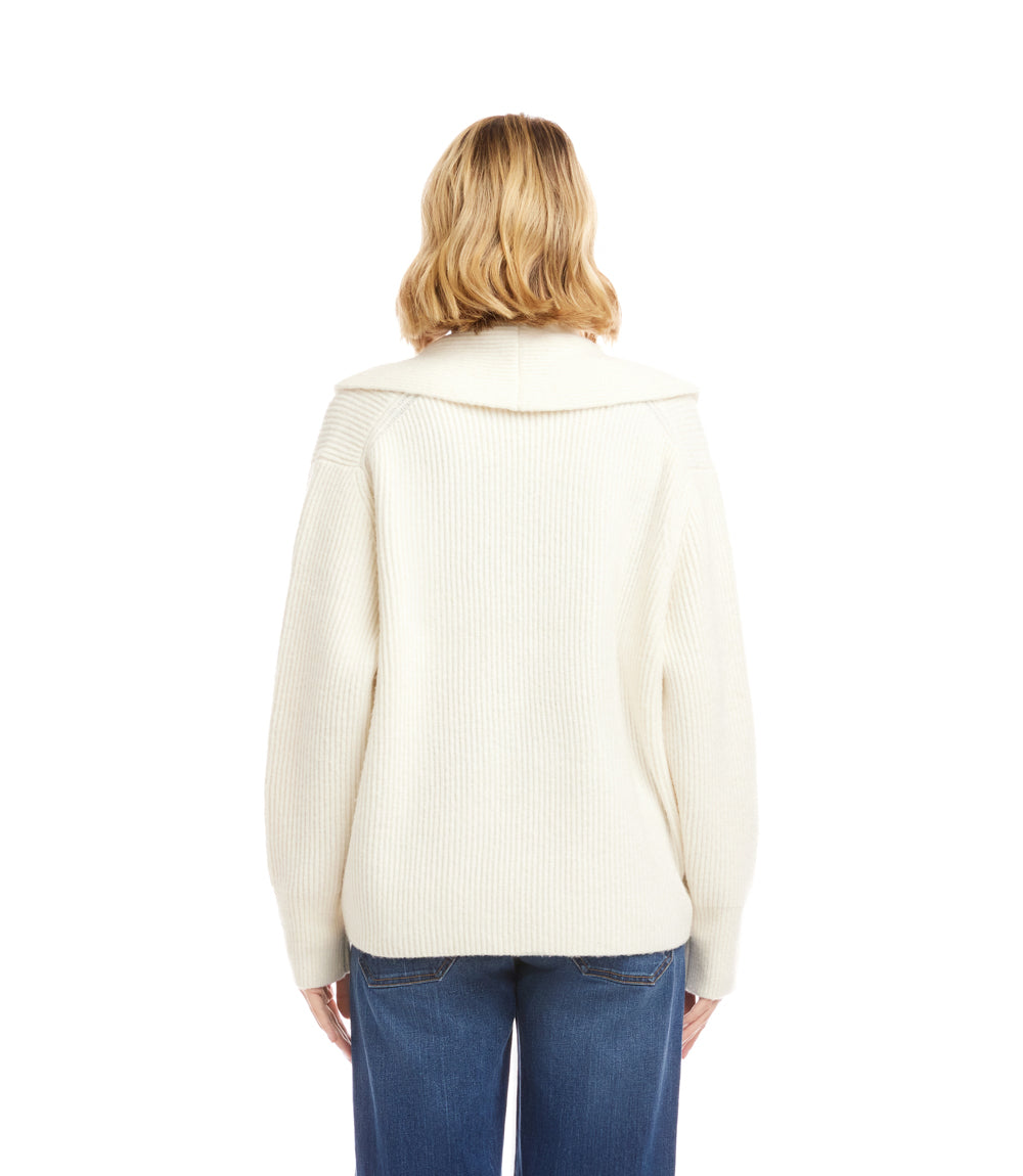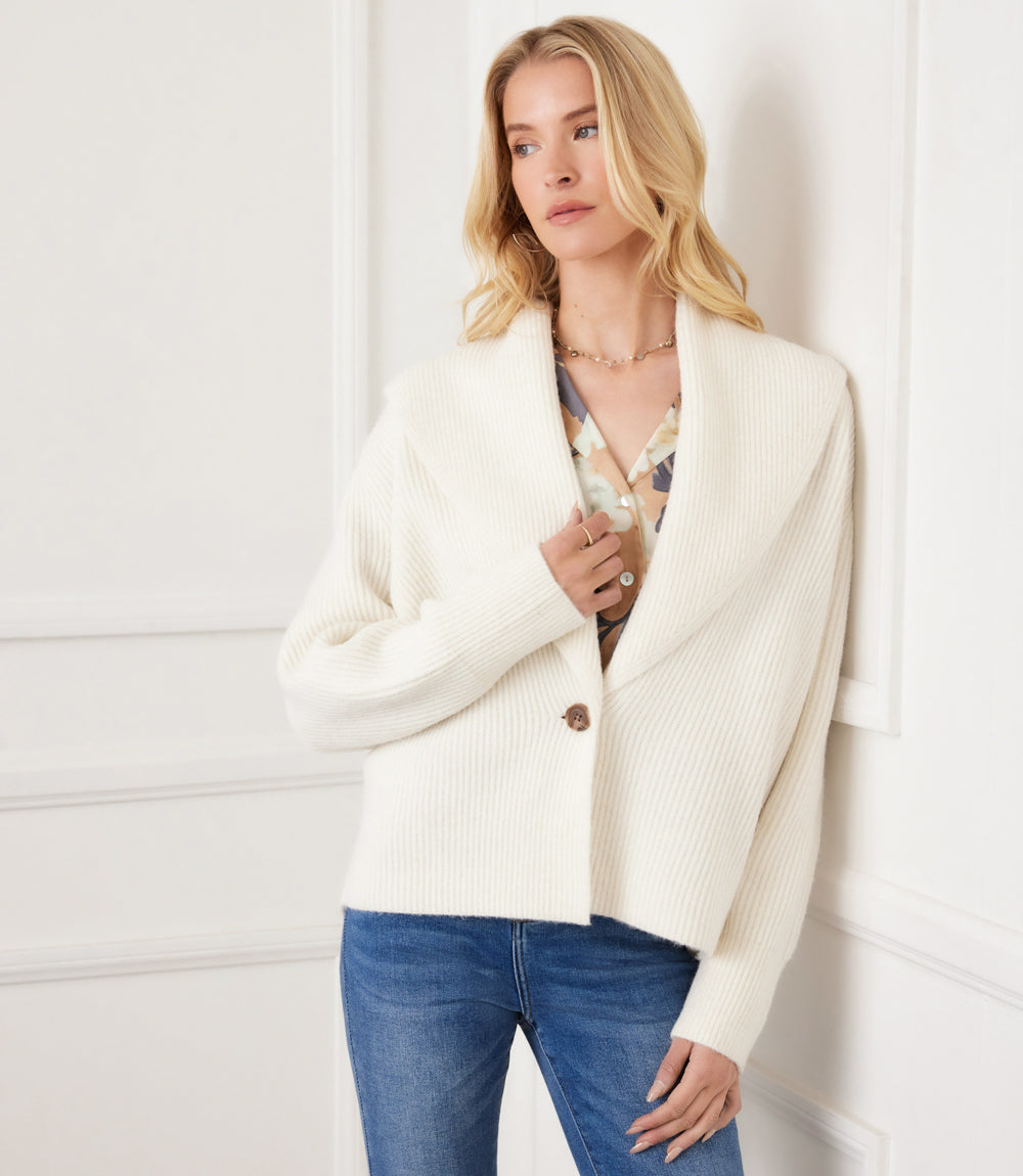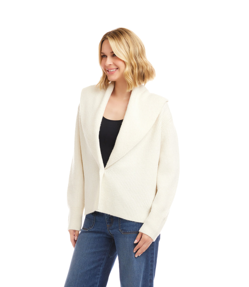 Wrap yourself in effortless comfort with this ribbed cardigan. Designed with a cozy shawl collar and long raglan sleeves, it brings both structure and ease to your look. The soft knit includes a touch of wool for added warmth without bulk. Finished with a single tortoise-like button closure, this piece offers understated elegance that layers beautifully over any outfit.