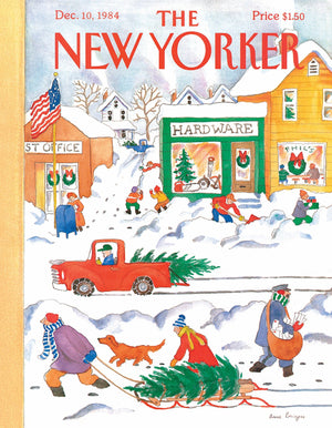 Bring home the magic of the holidays with the Snow Day 100-piece mini puzzle, featuring the December 10, 1984 cover of The New Yorker by artist Anne Burgess. This charming winter scene captures a bustling city street during the Christmas season—shoppers rushing through snow-covered sidewalks, picking out Christmas trees, and admiring shop windows glowing with colorful holiday decorations. Snow blankets the buildings and roads, evoking the crisp chill and cozy cheer of a classic holiday moment. Perfect for puzzle lovers, art collectors, and fans of nostalgic winter scenes, this compact puzzle makes a thoughtful gift or festive addition to your seasonal collection.