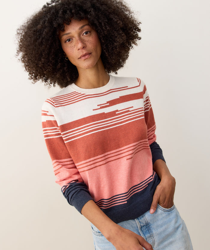 Move over, boring sweaters. There's a new knit in town. This lightweight sweater features a custom sunset design and an incredibly soft fabric to carry you through the season.