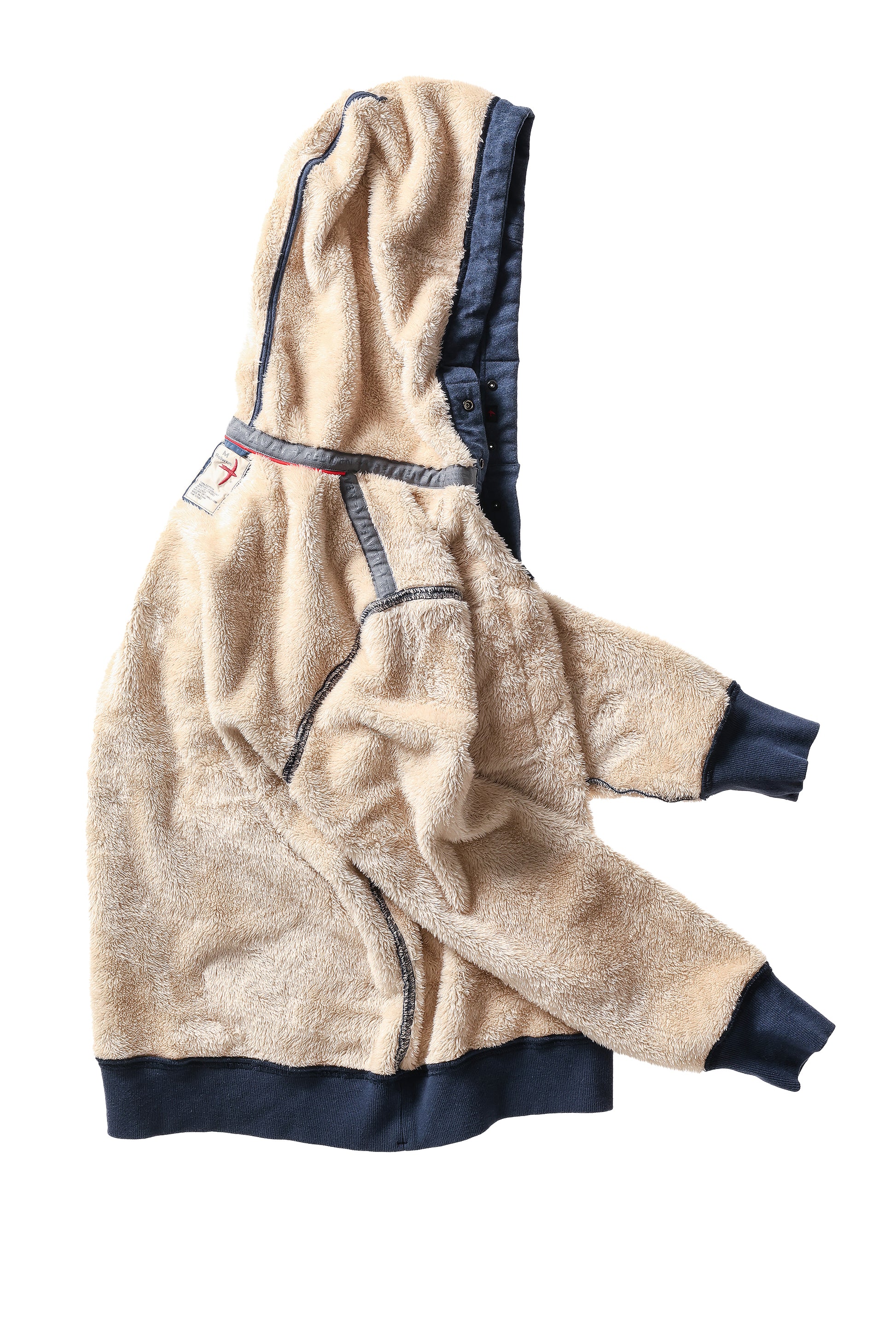Cotton jersey face with lightweight shaggy pile backside, our iconic Hoodie in superfleece exudes great body and pliancy. Wear over a woven shirt with one snap closed and half-tucked at the waist for an unexpectedly refined look…because anyone can dress a hoodie down.