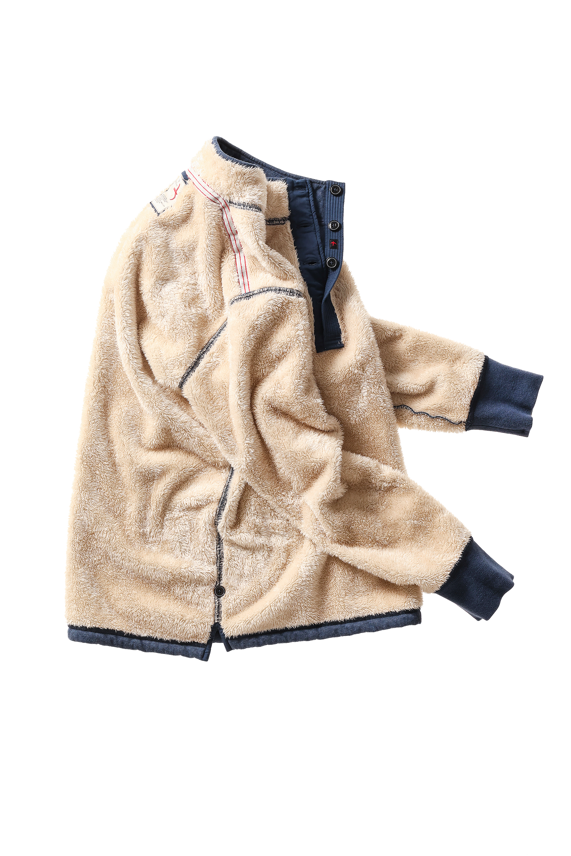 Whatever you have in store for the day, this mock will keep up. The bonded thermal cotton jersey with lightweight pile backside makes for a tremendously wearable garment, functional across a broad range of activity and temperature. Paired with our unique button placket and this mock becomes one of the most versatile knits we make.