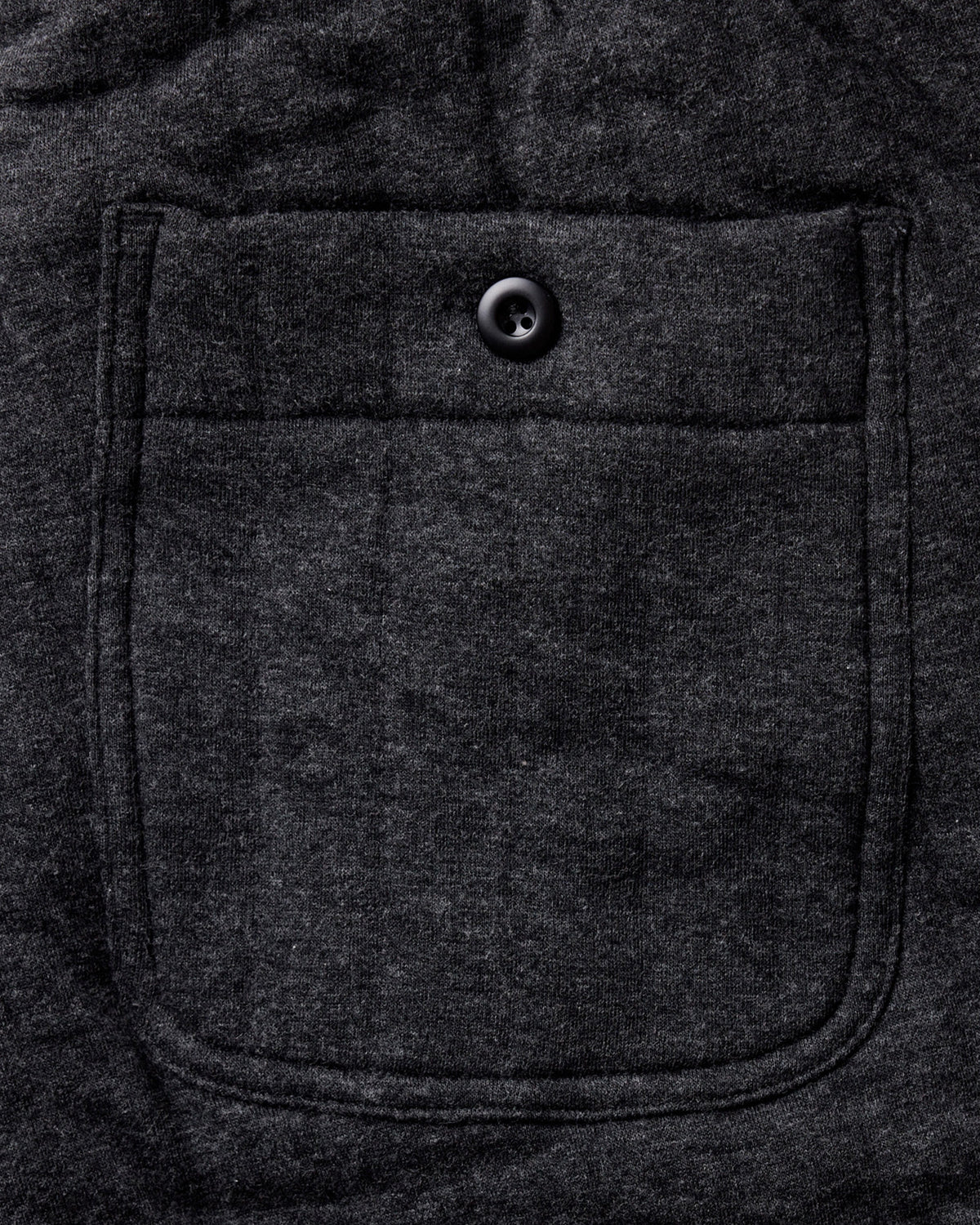 The Après Pant in Heather Midnight Quilted Jersey is crafted from a plush, cotton-rich blend with a recycled fill for blanket-soft comfort that’s smooth against the skin. Finished with an adjustable drawstring waist, four functional pockets, and a button fly.