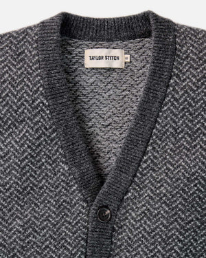 The Eddy Cardigan in Heather Charcoal Herringbone