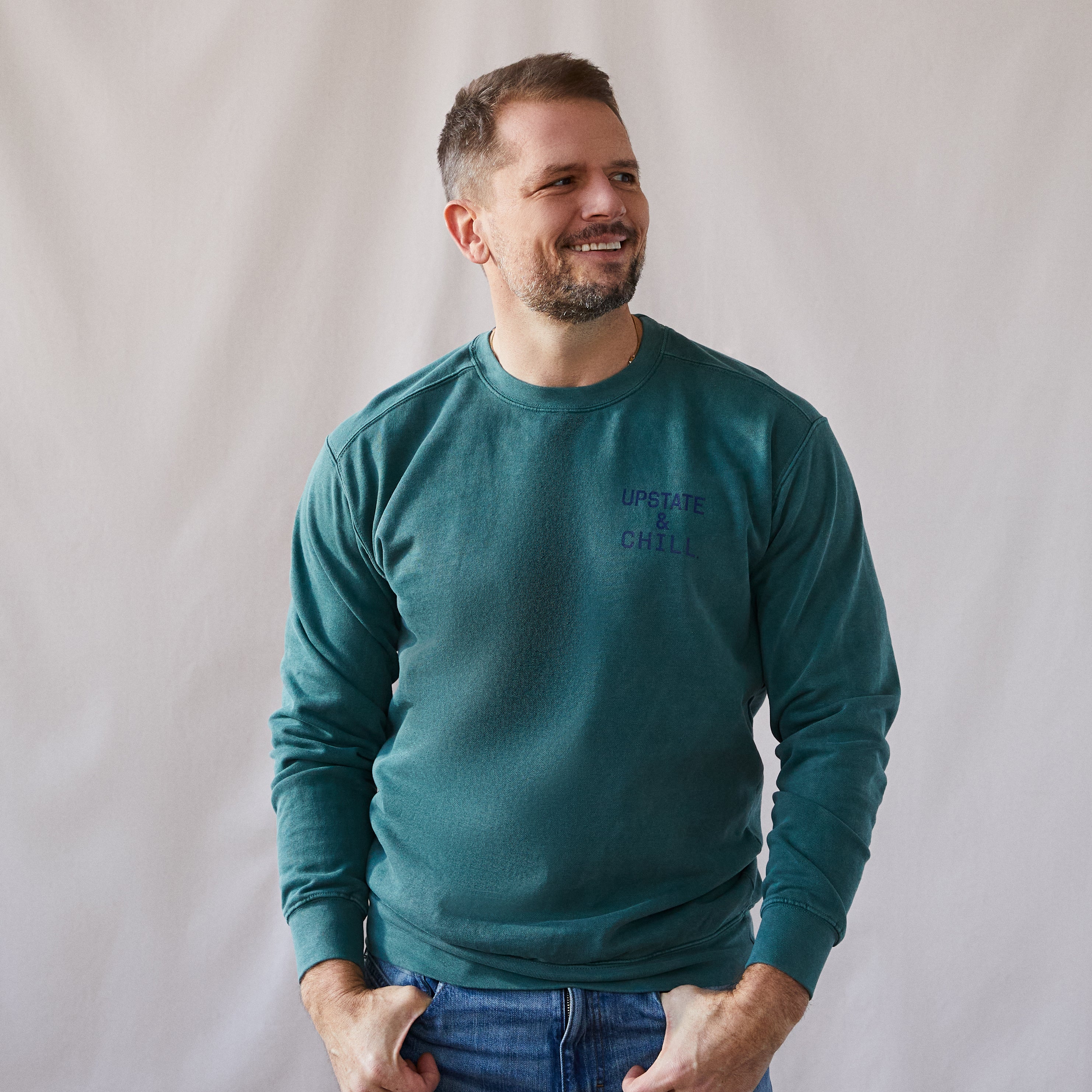 The Heart: Upstate & Chill® Crewneck - Blue Spruce
