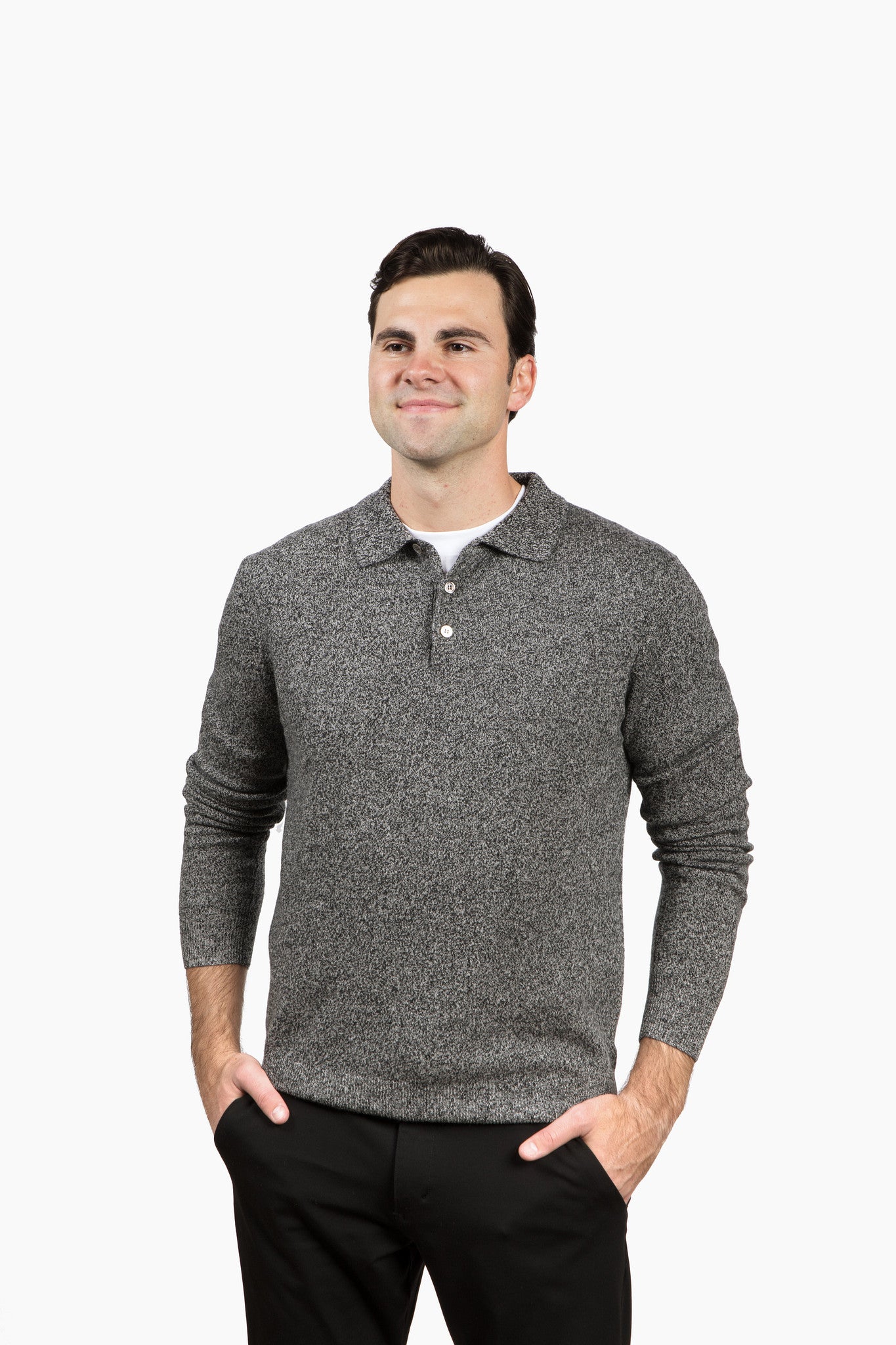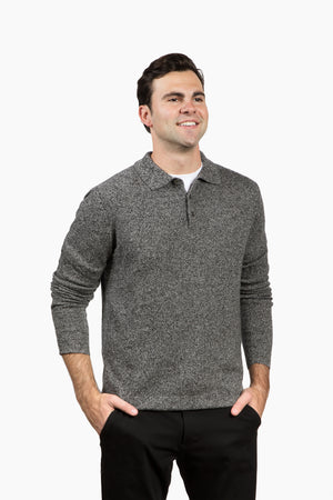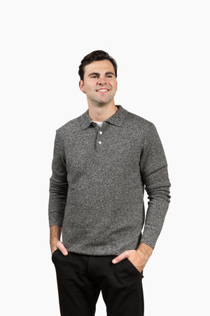 The Rhinebeck Sweater Polo in Merino Cashmere - Grey/Black Tweed