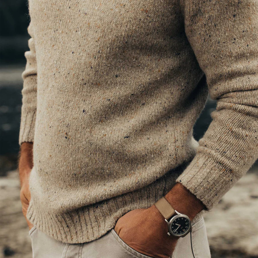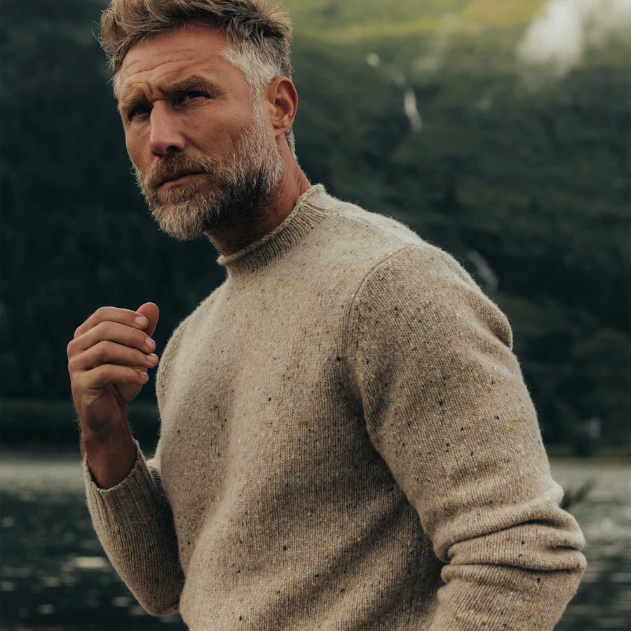 In The Seafarer Sweater, a heritage coastal style finds contemporary practicality. Drawing inspiration from the rugged knitwear sported by the likes of Ernest Hemingway, The Seafarer boasts a timeless funnel neck design with richly textured detailing throughout. As the name would suggest, we built this sea dog to take a licking, developing character with each season of wear.