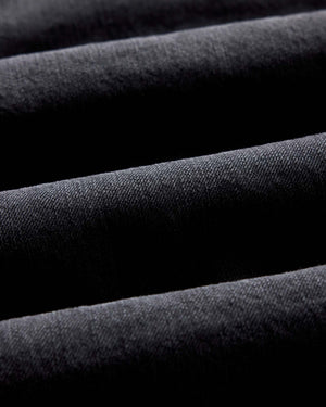 This black indigo-dyed garment will age gracefully and yield beautiful fades down the line. A natural feature of indigo products is “crocking,” where the dye can rub off on light-colored clothing and upholstery. Be mindful, wear often, and wash when needed.