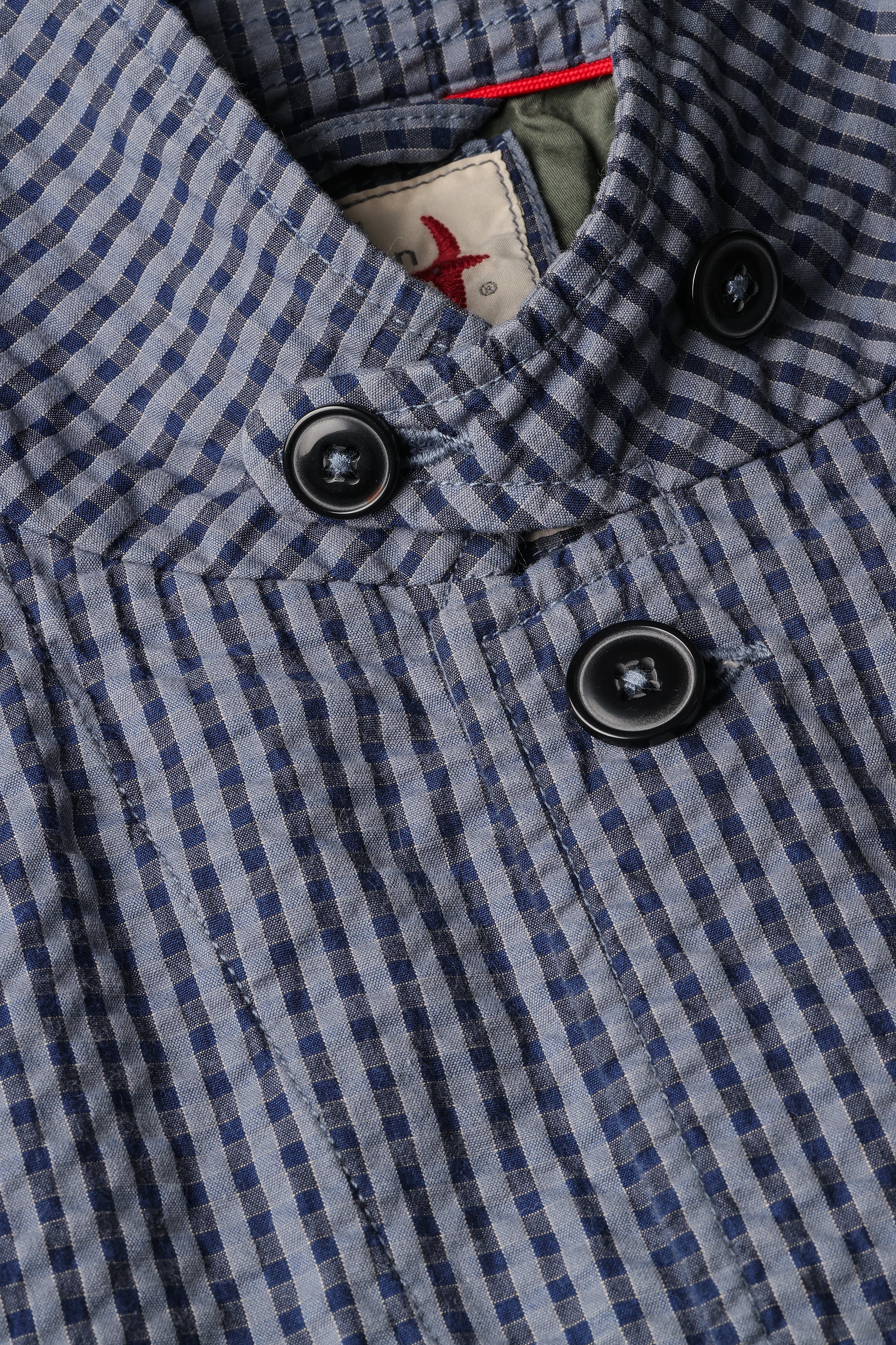 navy/blue check: 100% cotton puckered seersucker, 177 gsm