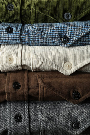 If words like luxury and workwear could marry, this would be their baby. A rugged and eclectic mix of materials, all in a classic fitting workshirt. To be be worn as a lightweight jacket or just a beautiful overshirt.