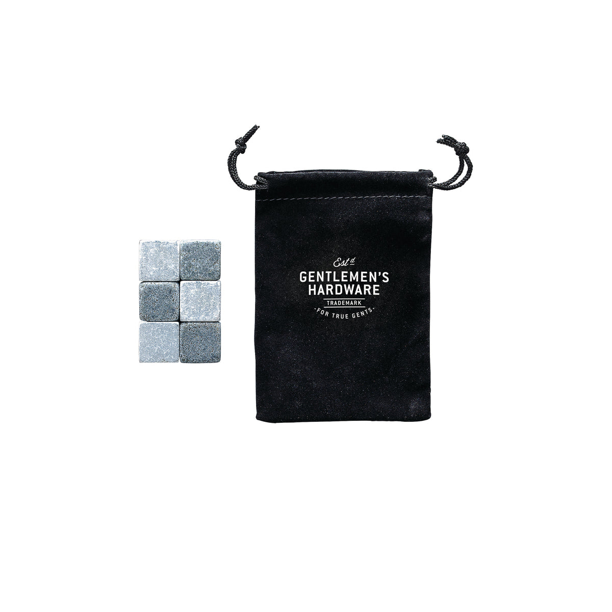 Chill your drink without dilution, the Gentlemen's Hardware Whisky Stones are ideal for any ice cold drink lover. Practical and stylish, the phrase 'on the rocks' is brought to life with this set of six stones made from granite and soapstone. Simply pop in the freezer four hours before use, then when you wish to chill your drink, use as you would ice cubes. An innovative and unique design, ideal for travelling and any ice cold nightcap. Perfection chilled! Hand wash only. Set of 6 individual stones with fabric branded storage pouch.