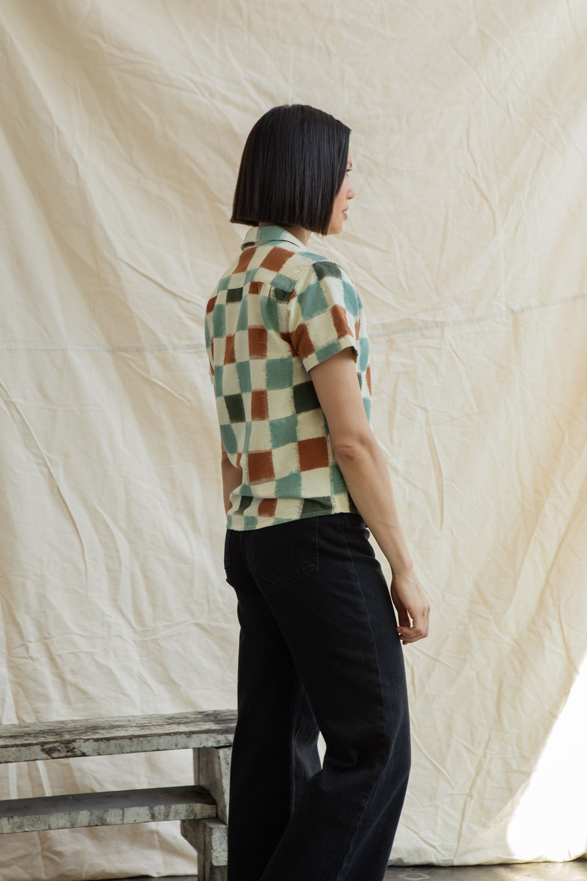 Retro-inspired and lightweight, the Wren offers a relaxed fit for enduring comfort in the summer months. Crafted from a striking ikat checkerboard fabric, this shirt dress is a true work of art. Ikat is one of the oldest and most intricate weaving techniques, where threads are resist-dyed before being woven, creating beautifully blurred, one-of-a-kind patterns.